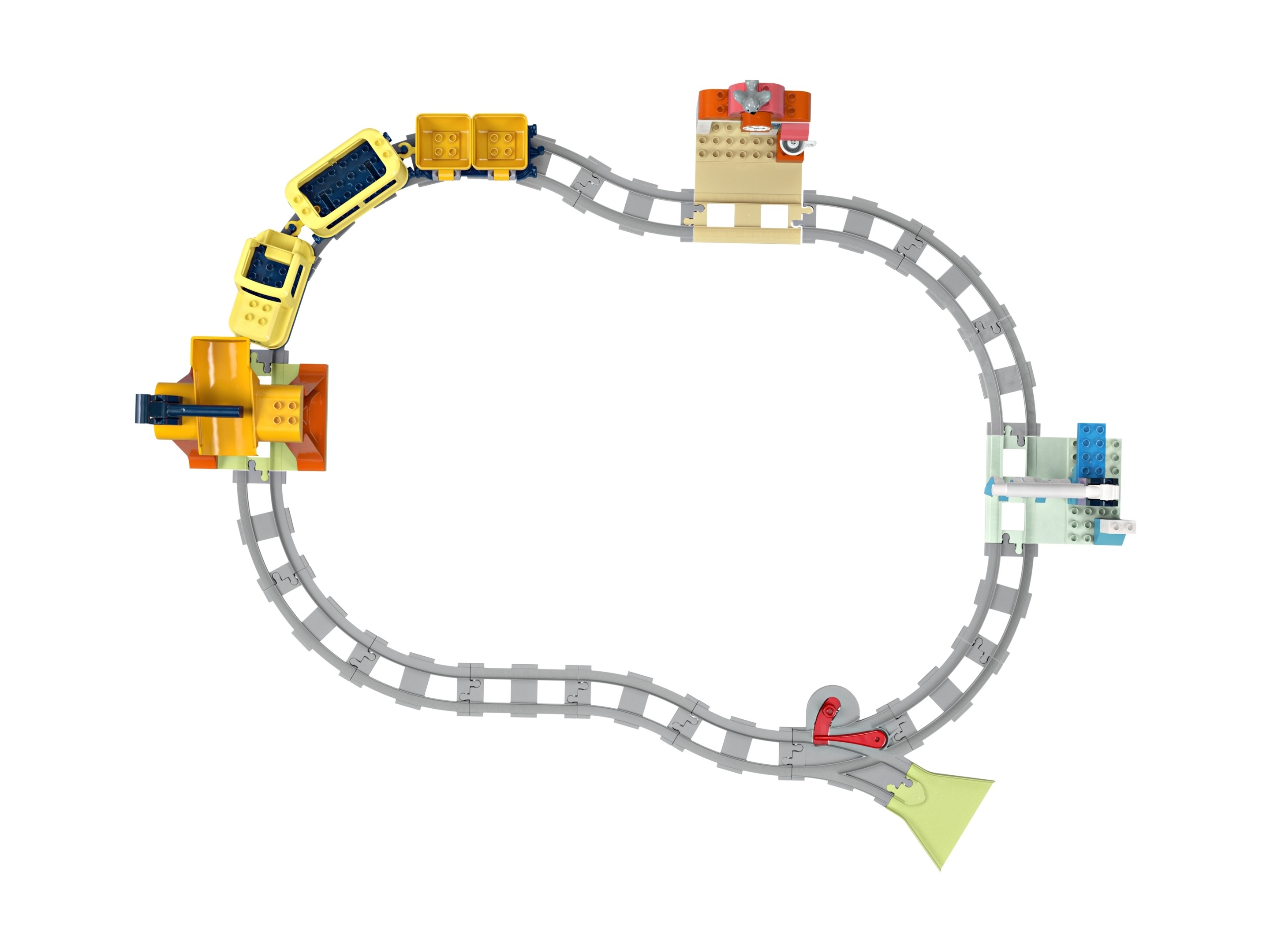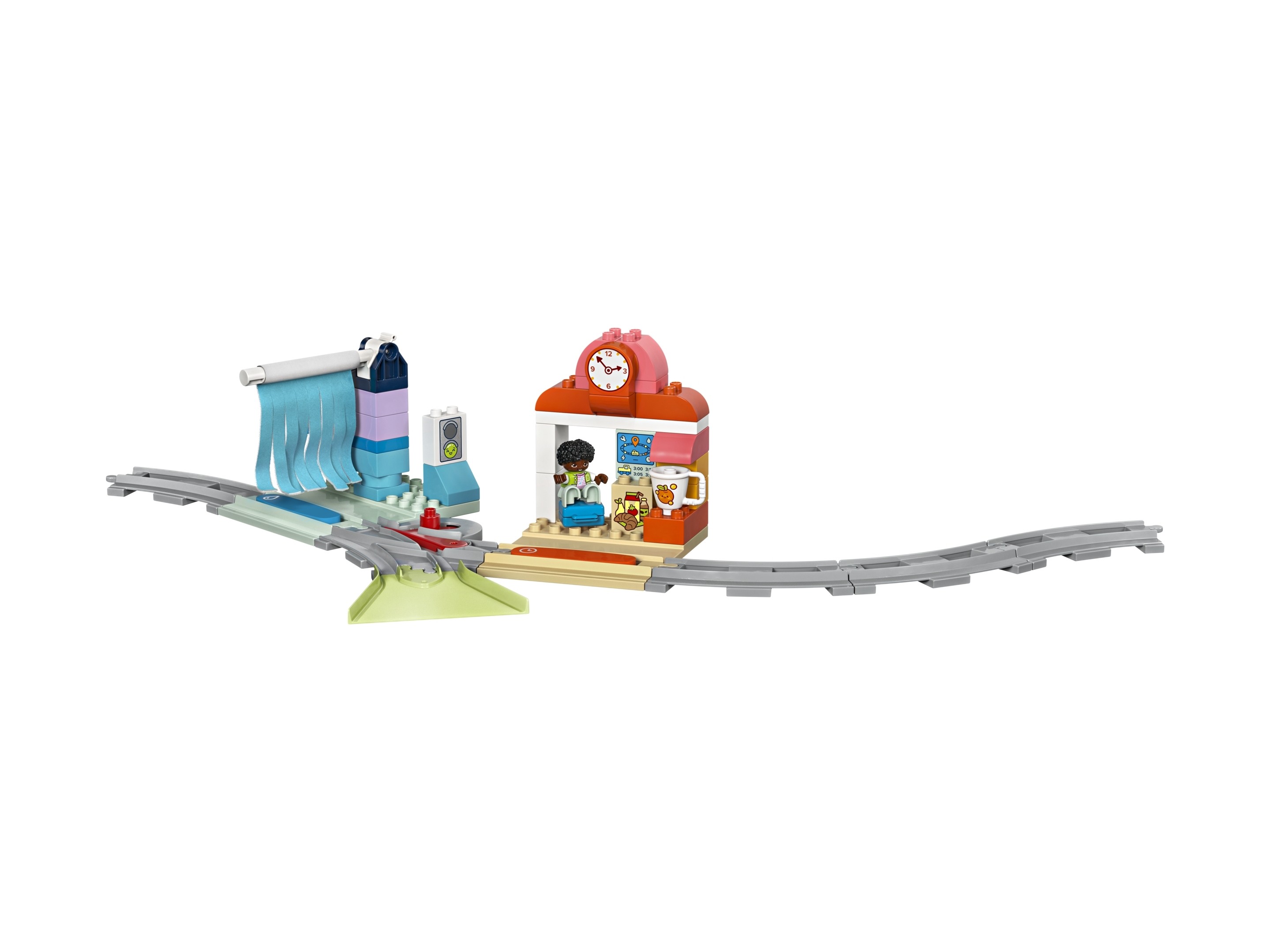 Podróżmałych maszynistów rozpoczyna się na dworcu kolejowym. Dzieci wykorzystują swoją kreatywność, by zaplanować trasę pociągu pasażerskiego z funkcją ręcznego startu, a w trakcie zabawy wykorzystują umiejętności rozwiązywania problemów. Mogą załadować pociąg towarami, ładować silnik lub myć wagony. Każdemu takiemu zadaniu towarzyszą światła i dźwięki, kiedy pociąg przejedzie przez jeden z pięciu klocków funkcyjnych. Zestaw pomaga także w pracy nad cierpliwością i ciekawością, kiedy dzieci wymyślająnowe sposoby na ułożenie torów.