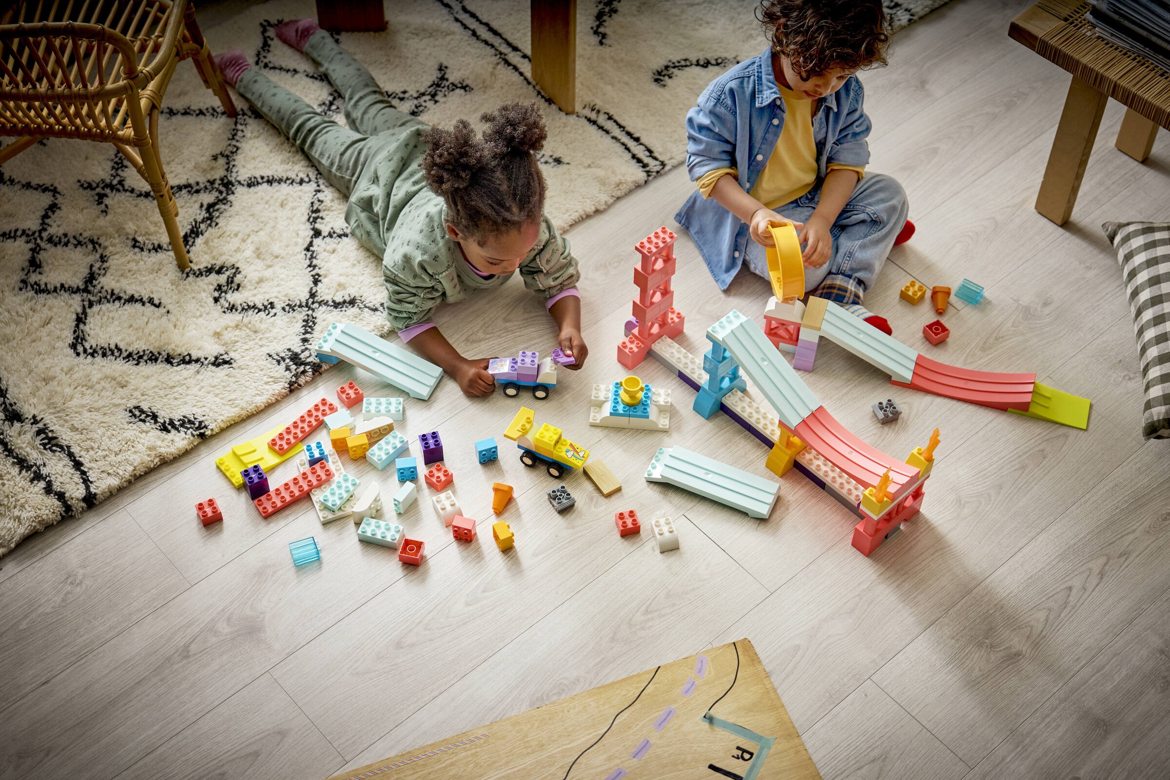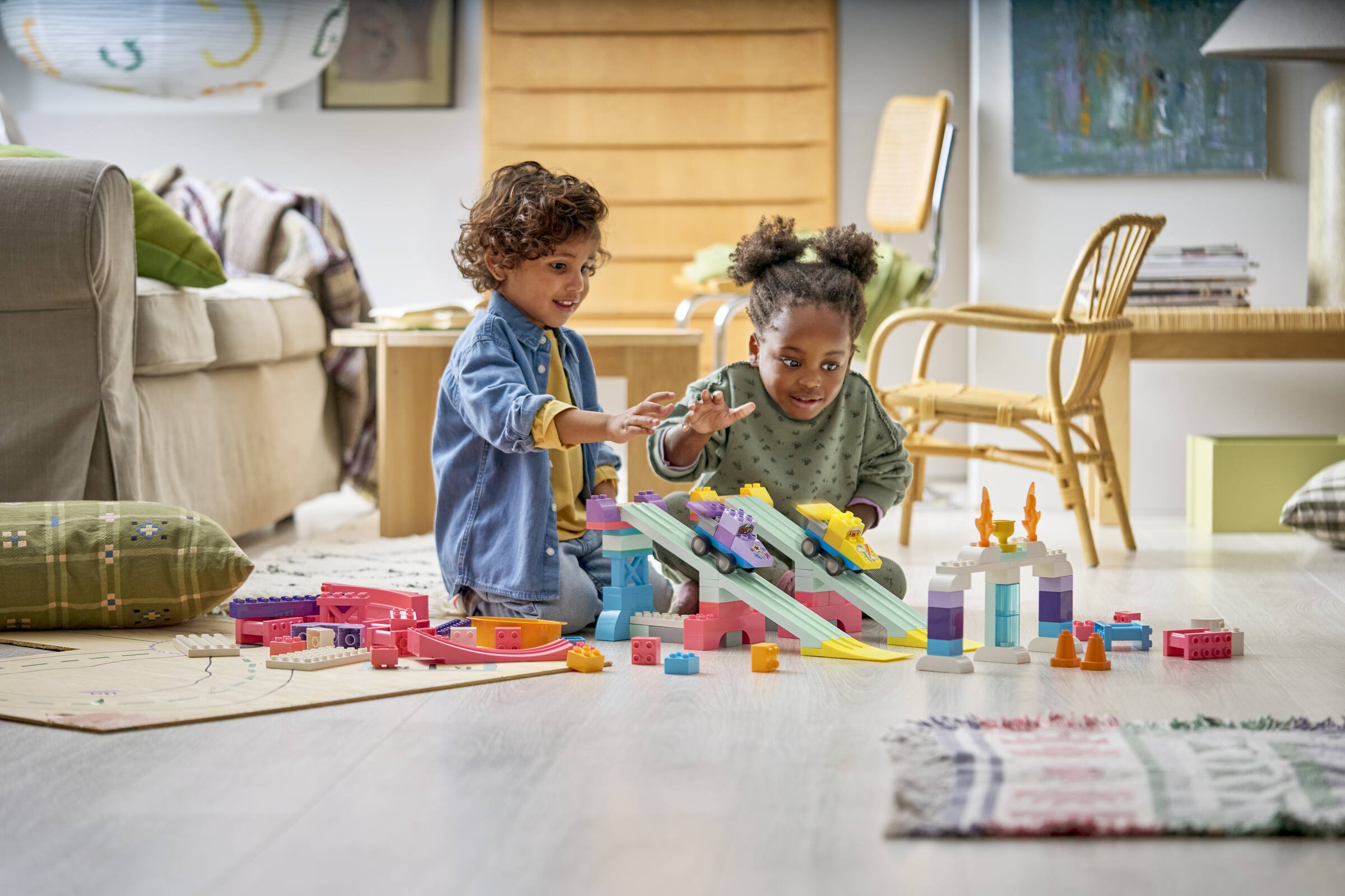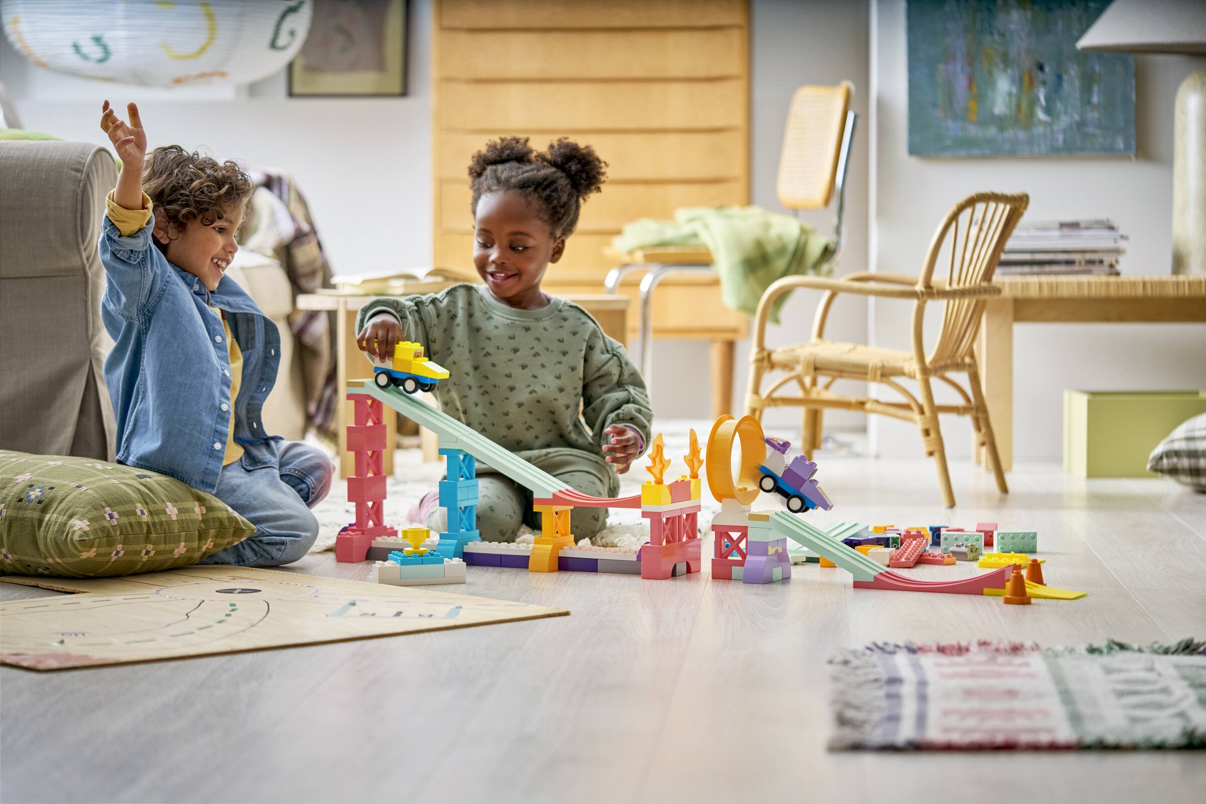 LEGO® 10478 to idealny wybór dla małych konstruktorów, którzy marzą o emocjonujących wyścigach. W skład tego zestawu wchodzą aż 111 elementy, które pozwalają na zbudowanie trzech różnych ramp oraz dwóch wyścigówek. Każda z ramp oferuje unikalną zabawę - od długiej wyskoczni, przez dwie krótsze rampy do rozpoznawania kolorów, aż po pętlę nad przepaścią. Dzieci mogą rozwijać swoje umiejętności rozwiązywania problemów i inteligencję emocjonalną podczas zabawy.
