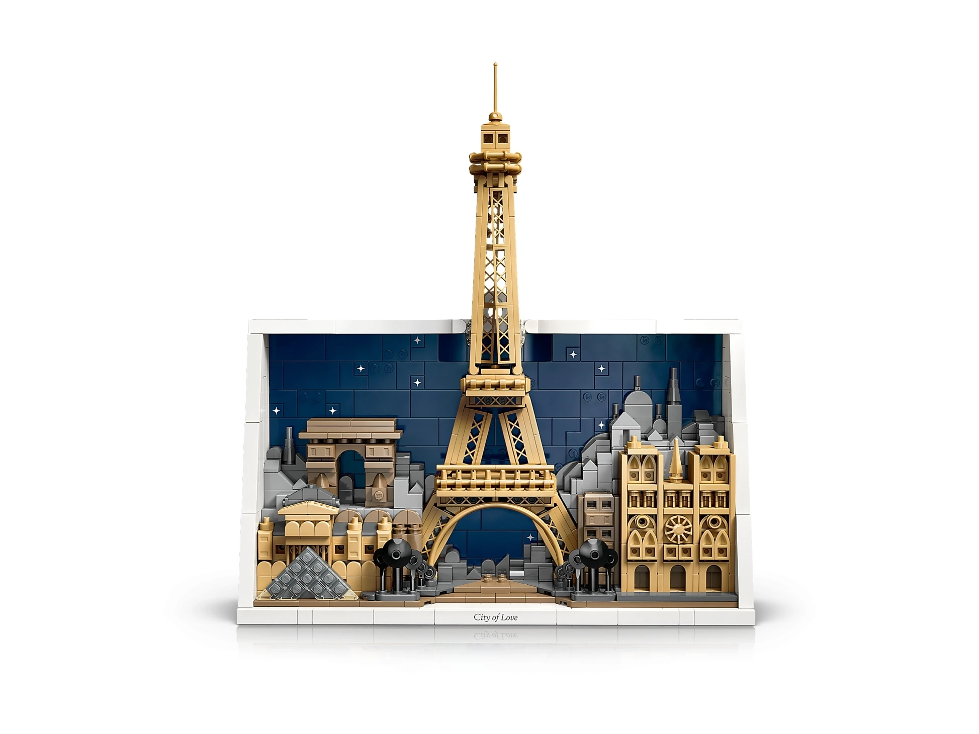 Idź do instrukcjiPodziel się swoją fascynacją Paryżem i jego kultowymi zabytkami dzięki temu kolekcjonerskiemu zestawowi LEGO® Architecture Paryż — miasto miłości (21064) dla dorosłych w wieku od 18 lat. Stwórz ozdobę, która będzie wspaniałym prezentem dla Ciebie lub każdego miłośnika historii lub podróży. Podczas budowania podziwiaj rozgwieżdżone niebo i panoramę miasta. Odkryj szczegóły Wieży Eiffla, katedry Notre-Dame, Łuku Triumfalnego i Luwru. Dopełnij całości, dodając ozdobny klocek z napisem „City of Love” („Miasto miłości”) i ramkę z klocków, a następnie powieś model na ścianie lub postaw na półce w domu lub biurze.