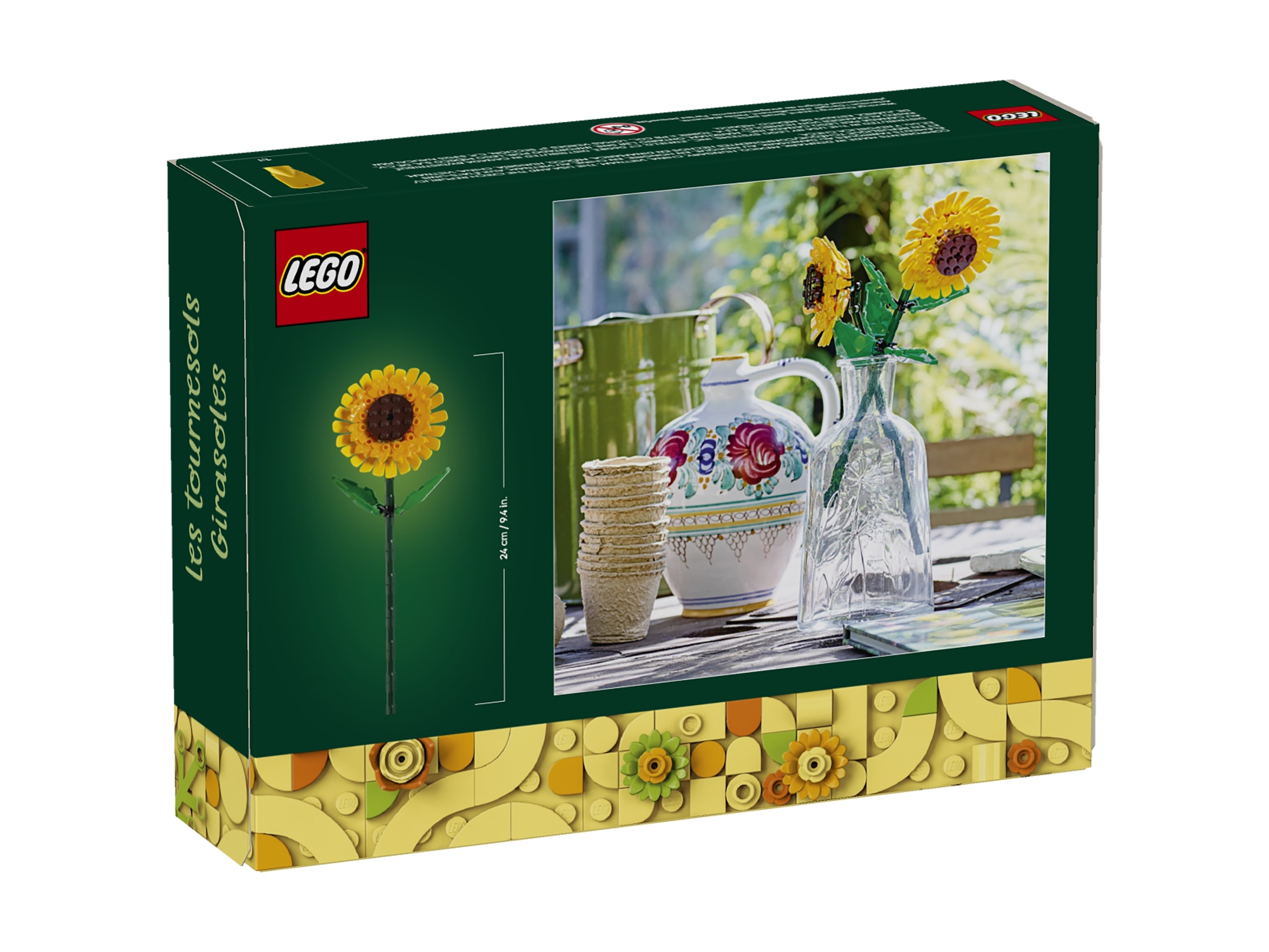 Zestaw klocków LEGO Botanicals Słoneczniki 40524 został pokazany w 2022 roku i zbudowany jest z 191 klocków LEGO®. Klocki przeznaczone są dla dzieci i młodzieży od 8 roku życia. Numery EAN klocków LEGO® 40524 to: 5702018213650, 5702017165646. Kody UPC zestawu klocków LEGO® Słoneczniki to: 673419434089, 673419359597.