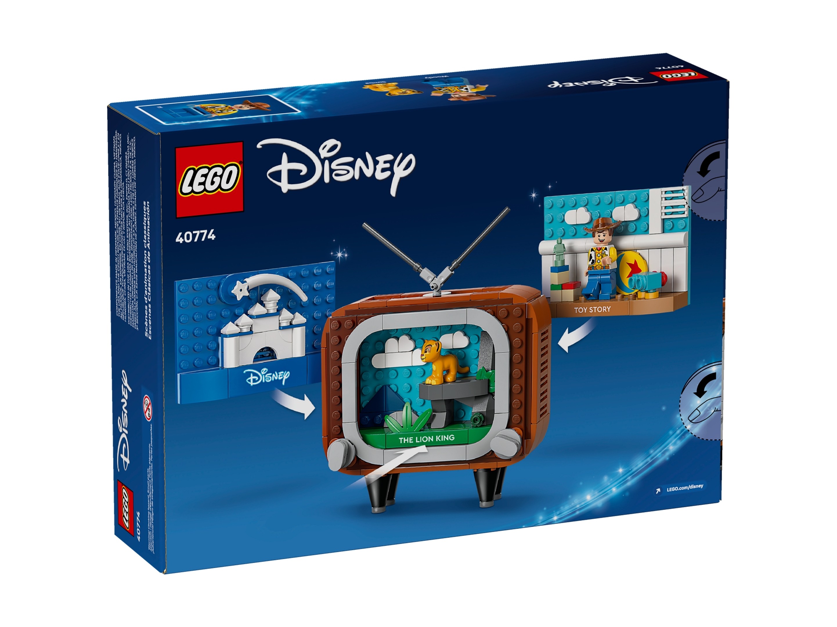 LEGO® 40774 to prawdziwa gratka dla fanów filmów Disneya, którzy pragną zanurzyć się w świecie klasycznych animacji. Zestaw konstrukcyjny wprowadza w klimat dawnych lat dzięki telewizorowi w stylu retro, który posiada obrotowe pokrętła i anteny. W środku znajdują się trzy wymienne sceny, które można łatwo zamieniać, pozwalając na niekończącą się zabawę i tworzenie nowych historii.