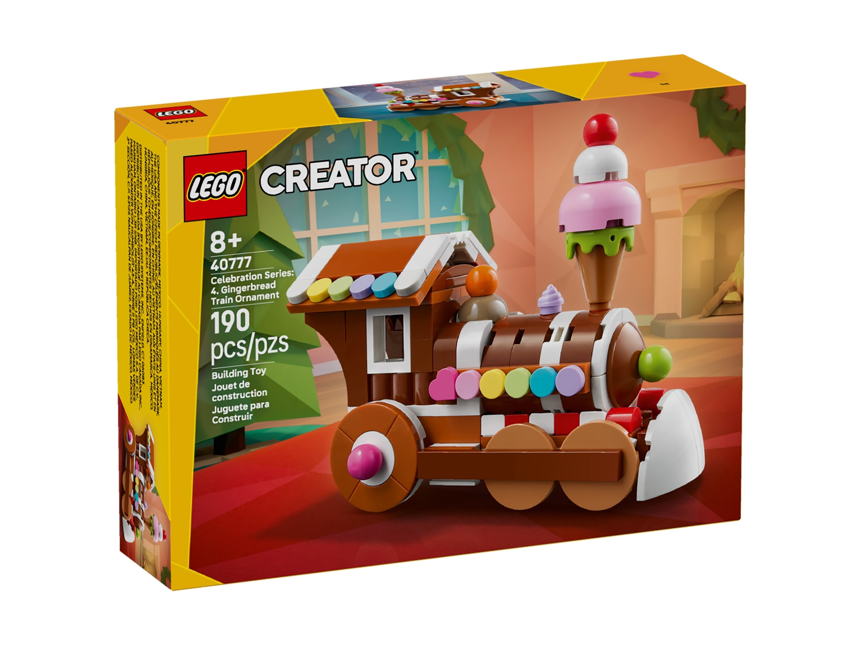 Zestaw klocków LEGO Creator Seria okolicznościowa: Ozdoba z piernikowym pociągiem 40777 został pokazany w bieżącym roku i zbudowany jest z 190 klocków LEGO®. Klocki przeznaczone są dla dzieci i młodzieży powyżej 8 roku życia.