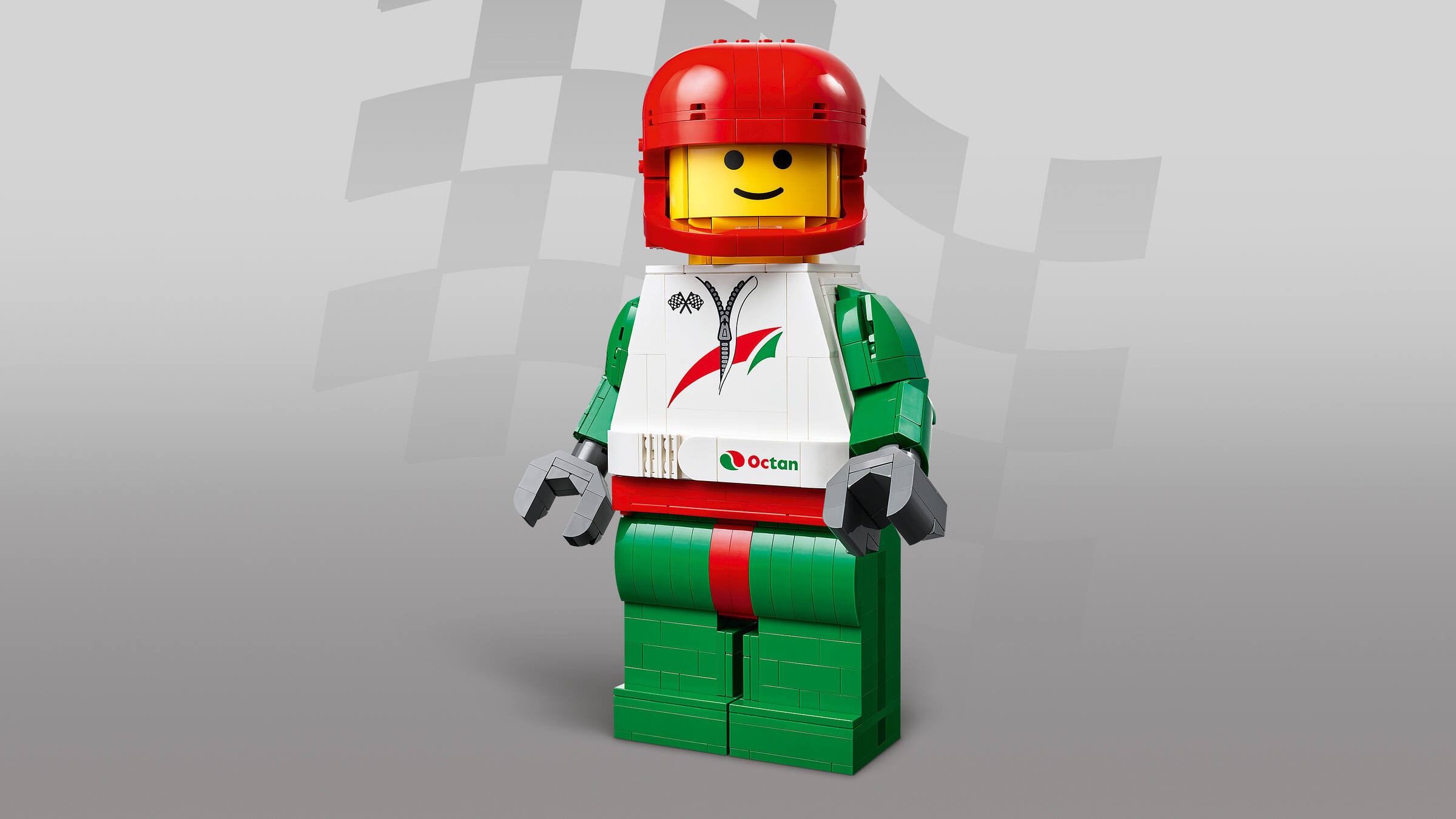 Zestaw LEGO Duża minifigurka kierowcy wyścigowego zbudowany jest z 694 klocków LEGO.