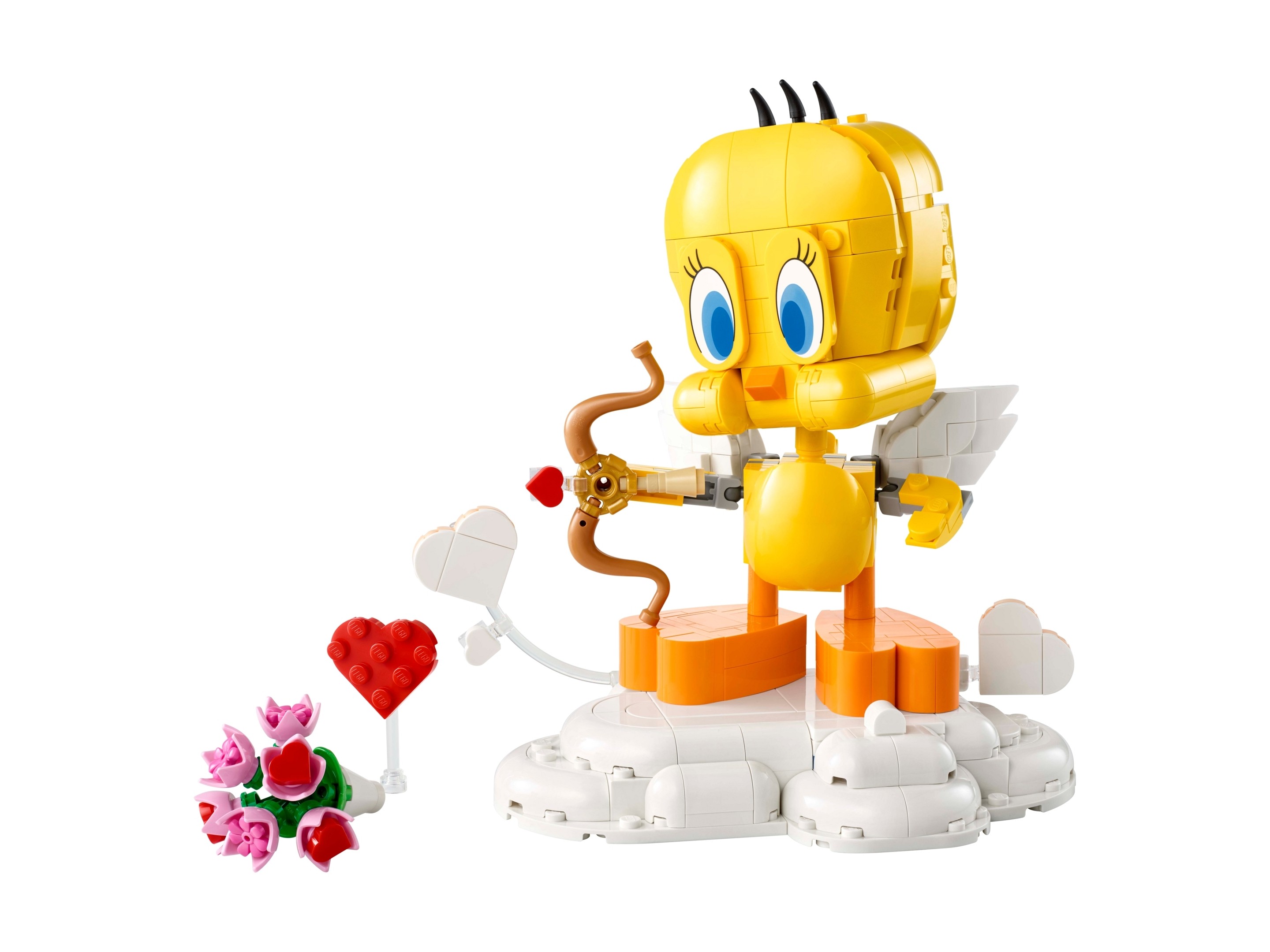 Zbuduj Tweety’ego jako kupidyna, umieszczając go na chmurce i dodając łuk oraz strzałę. Możesz też wręczyć mu bukiet kwiatów i umieścić serce nad głową, aby pokazać jego duszę romantyka. Figurka ma ruchomą głowę oraz poruszające się skrzydła, ogonek i stopy, a atrakcyjne akcesoria w zestawie LEGO sprawią, że ustawiony na półce model podbije serca.