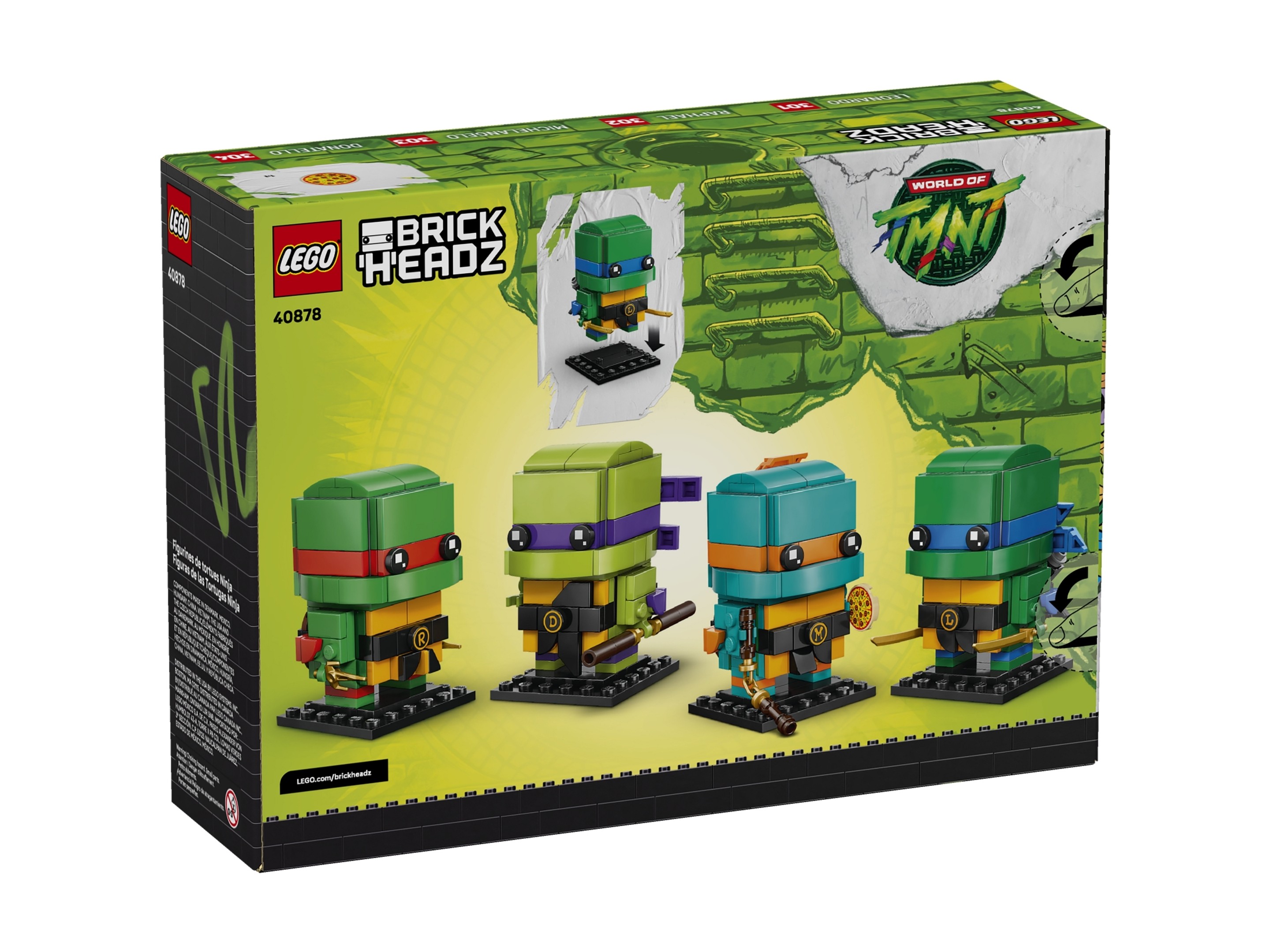Zestaw klocków LEGO 40878 BrickHeadz Figurki Wojowniczych żółwi ninja został przedstawiony w bieżącym roku i zbudowany jest z 567 klocków LEGO®. Klocki przeznaczone są dla dzieci i młodzieży powyżej 10 roku życia.