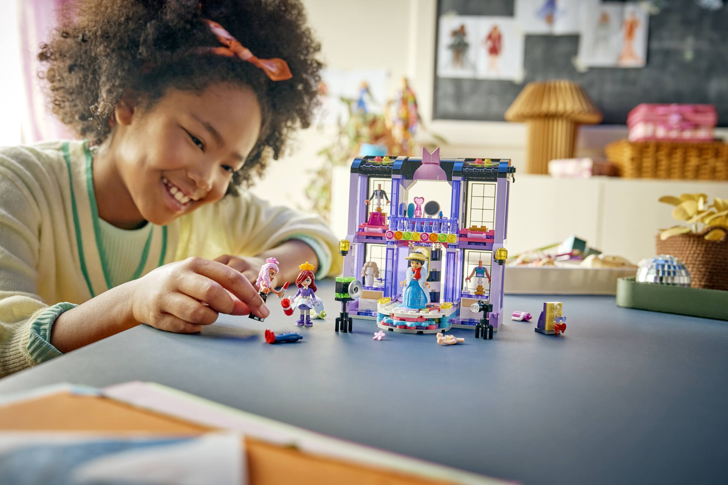 Dla młodych miłośników mody i kreatywnej zabawy, zestaw LEGO® 42685 oferuje niezliczone możliwości tworzenia własnych pokazów mody. Dzieci mogą stylizować trzy minilaleczki, wybierać spośród różnorodnych strojów i dodatków, takich jak spódnice, czapki czy okulary przeciwsłoneczne. Całość uzupełniają akcesoria, takie jak toaletka i lustra, które oddają atmosferę prawdziwego pokazu mody.