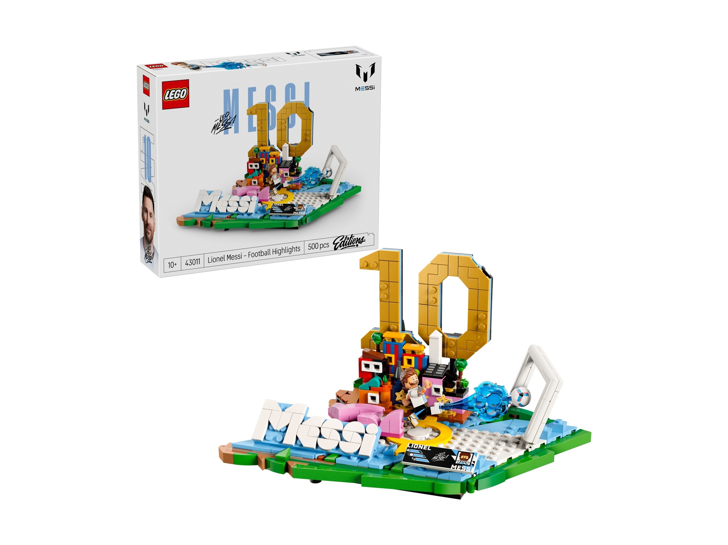 Zestaw klocków LEGO 43011 Editions Lionel Messi — piłkarskie momenty został zaprezentowany w tym roku i zbudowany jest z 500 klocków LEGO®. W opakowaniu znajdziesz też 1 minifigurkę. Zestaw klocków przeznaczony jest dla dzieci i młodzieży od 10 roku życia.