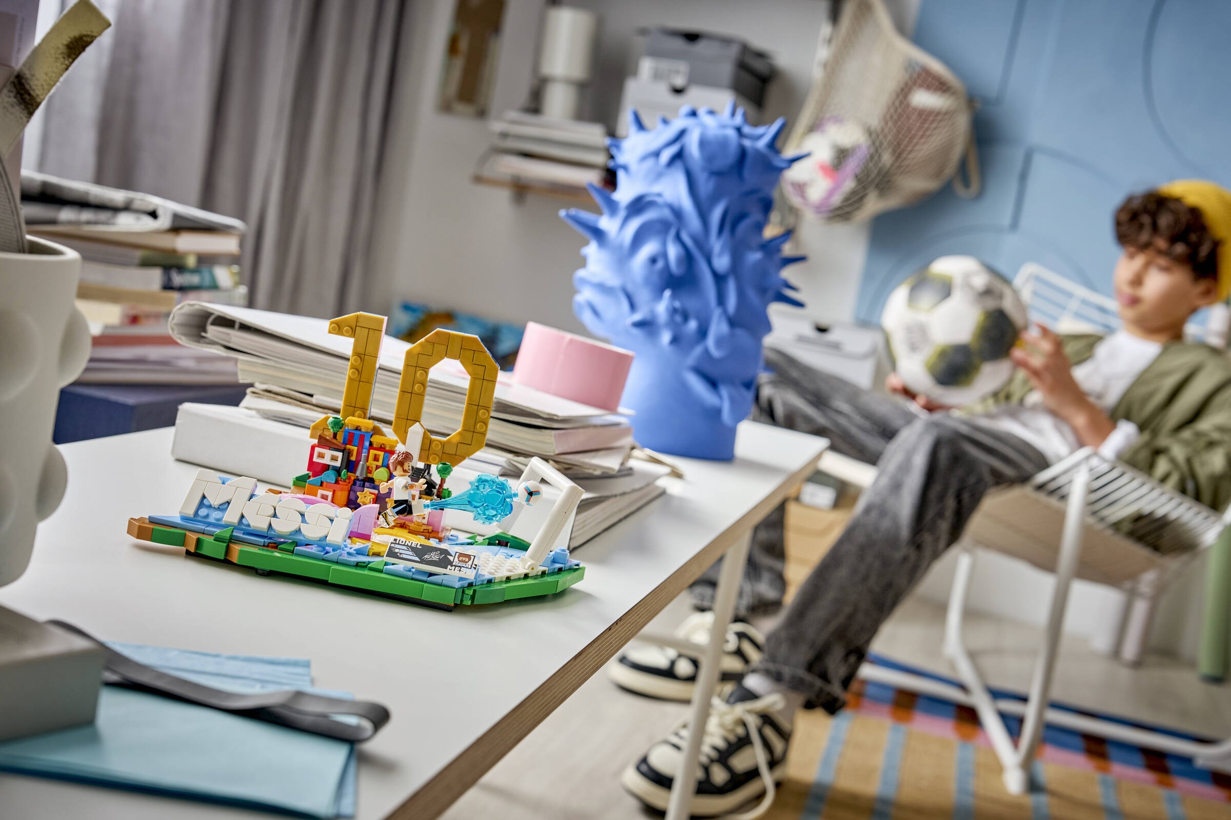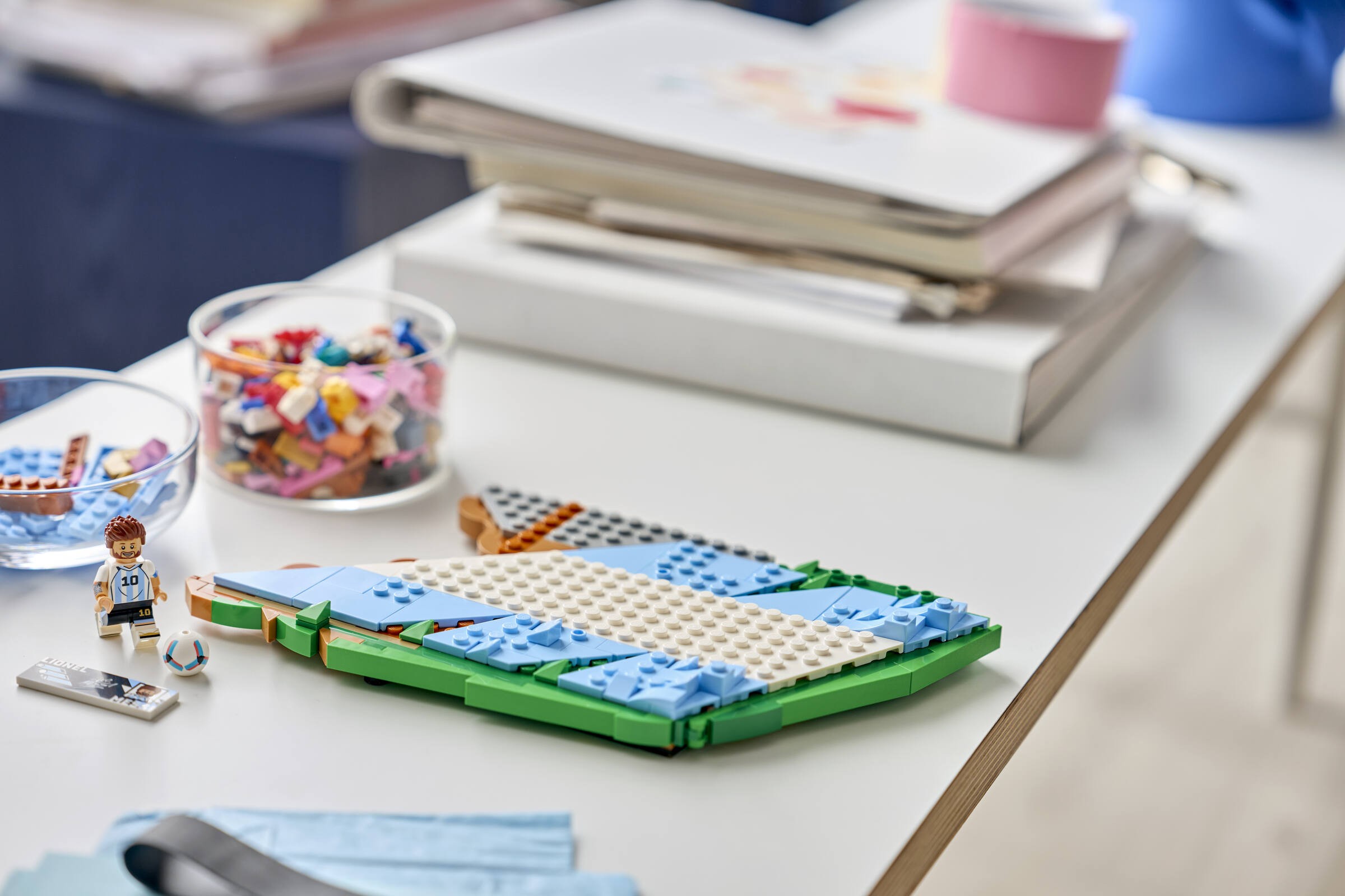 Inspiracją dla LEGO® Lionel Messi — piłkarskie momenty była pasja i determinacja, które Messi prezentuje na boisku. Podstawa modelu nawiązuje do barw reprezentacji Argentyny, a minifigurka Messiego dodaje całości autentyczności. Zestaw składa się z 500 elementów, co sprawia, że budowanie go jest nie tylko wyzwaniem, ale także świetną zabawą. Każdy szczegół został zaprojektowany z myślą o fanach, którzy z dumą będą mogli eksponować gotowy model jako dekorację.