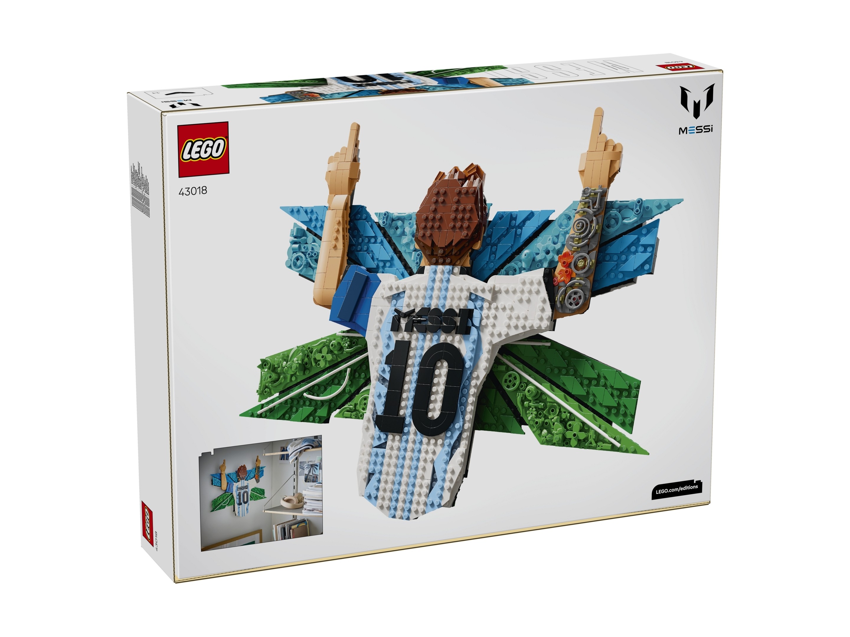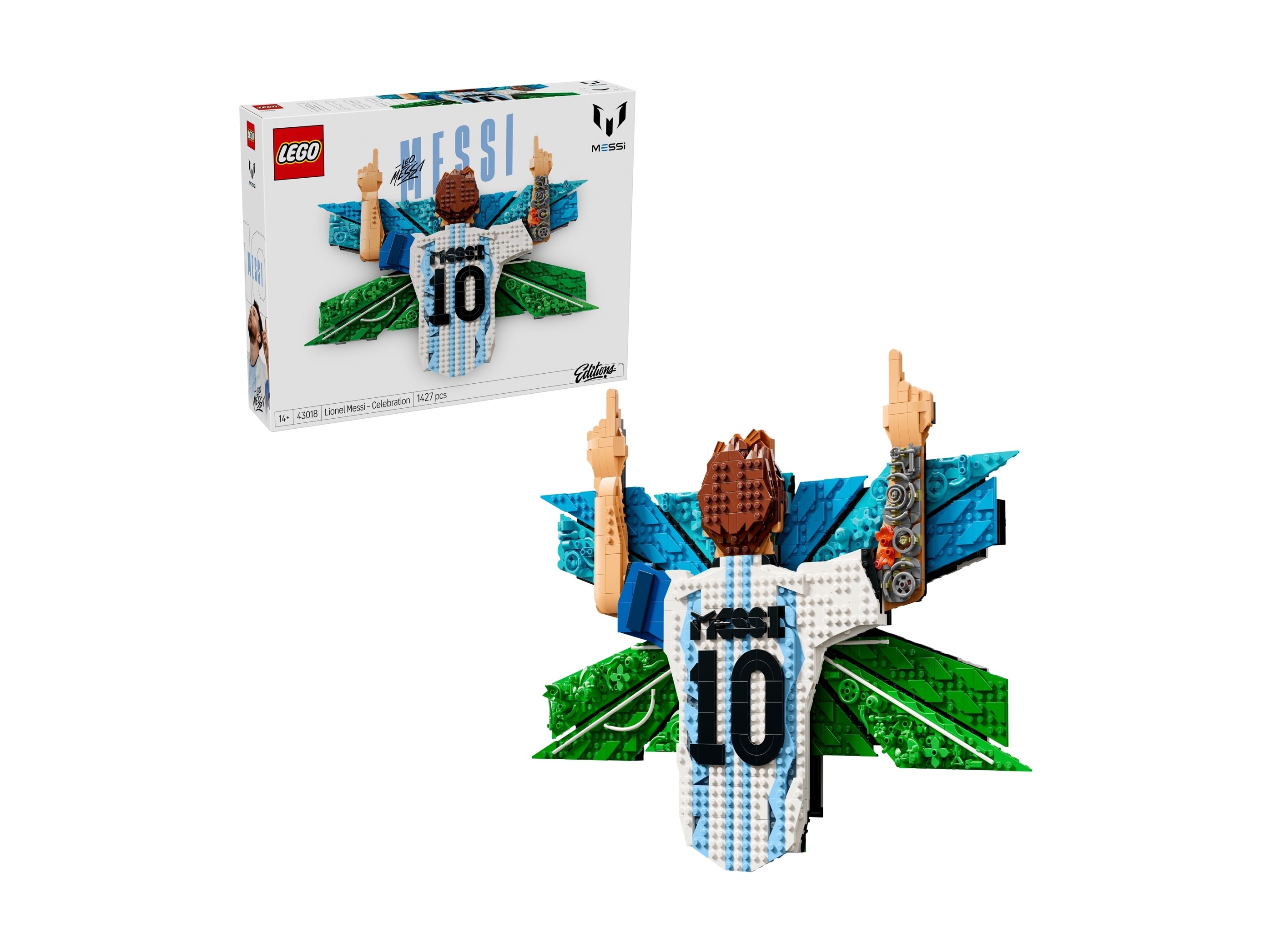Zestaw klocków LEGO 43018 Editions Lionel Messi — cieszynka został przedstawiony w bieżącym roku i zawiera 1427 klocków LEGO®. Klocki przeznaczone są dla dzieci i młodzieży powyżej 14 roku życia.