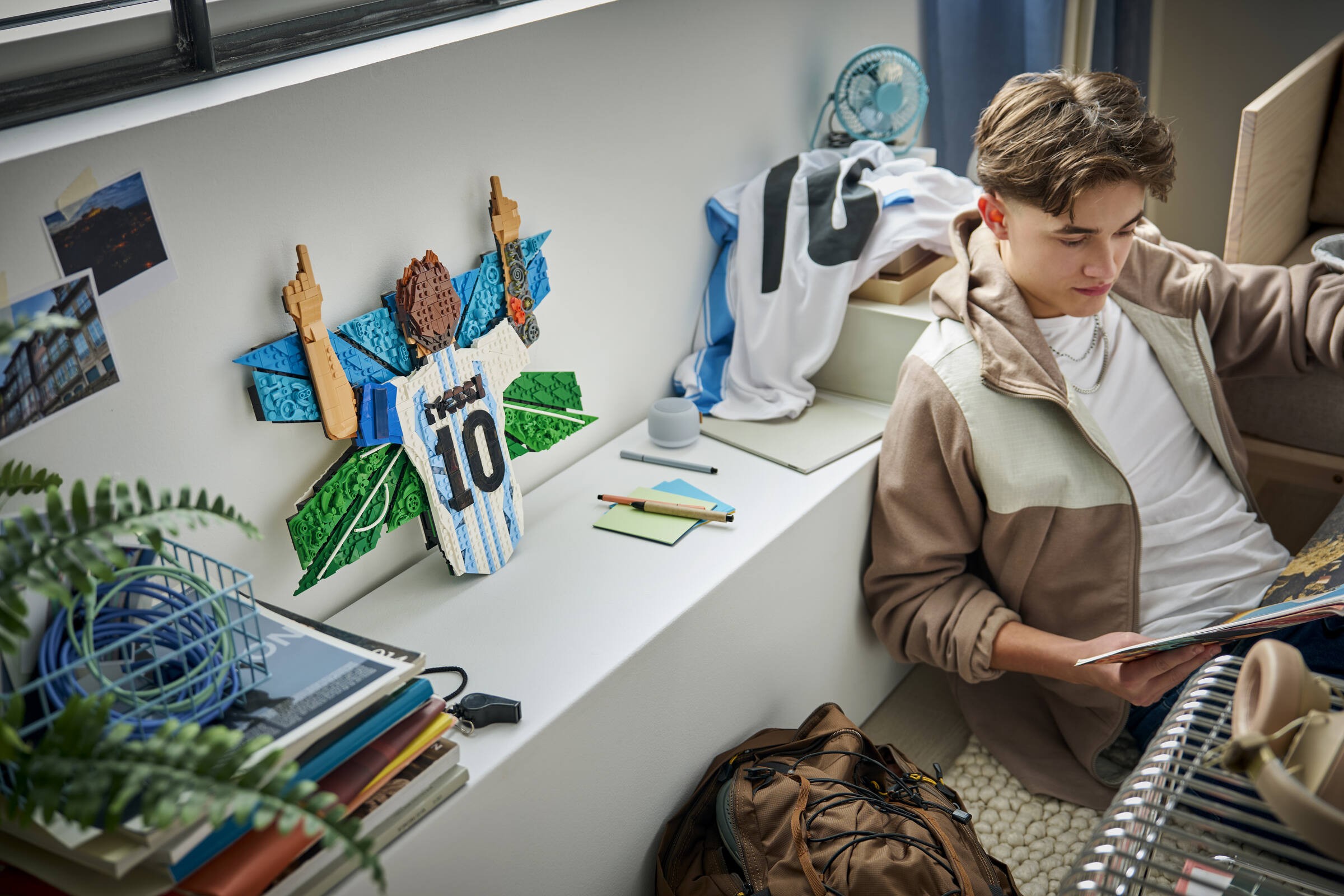 Zobacz instrukcjęDodaj nowego gracza do swojej kolekcji gadżetów piłkarskich dzięki zestawowi konstrukcyjnemu LEGO® Editions Lionel Messi — cieszynka (43018) dla chłopców i dziewcząt w wieku od 14 lat.Nastolatki mogą oddać hołd ulubionemu piłkarzowi, tworząc efektowną dekorację ścienną 3D przedstawiającą Lionela Messiego w jego legendarnej cieszynce — z palcem wskazującym w niebo. Sercem modelu jest kultowa koszulka w paski z numerem „10”, a tło z wypukłą fakturą przedstawiające niebo i boisko dodaje autentyczności. Zestaw jest pełen niespodzianek nawiązujących do życia i kariery Leo Messiego, które zachwycą fanów. Zaimponuj kolegom z drużyny i zawieś z dumą piłkarską dekorację w pokoju lub gabinecie za pomocą dołączonego haczyka.Ten zestaw konstrukcyjny to ciekawy pomysł na prezent urodzinowy lub świąteczny dla nastolatków i fanów piłki nożnej. Cyfrowe instrukcje są dostępne w aplikacji LEGO Builder, gdzie fani mogą śledzić postępy i obracać modele w 3D. Zestaw składa się z 1427 elementów.