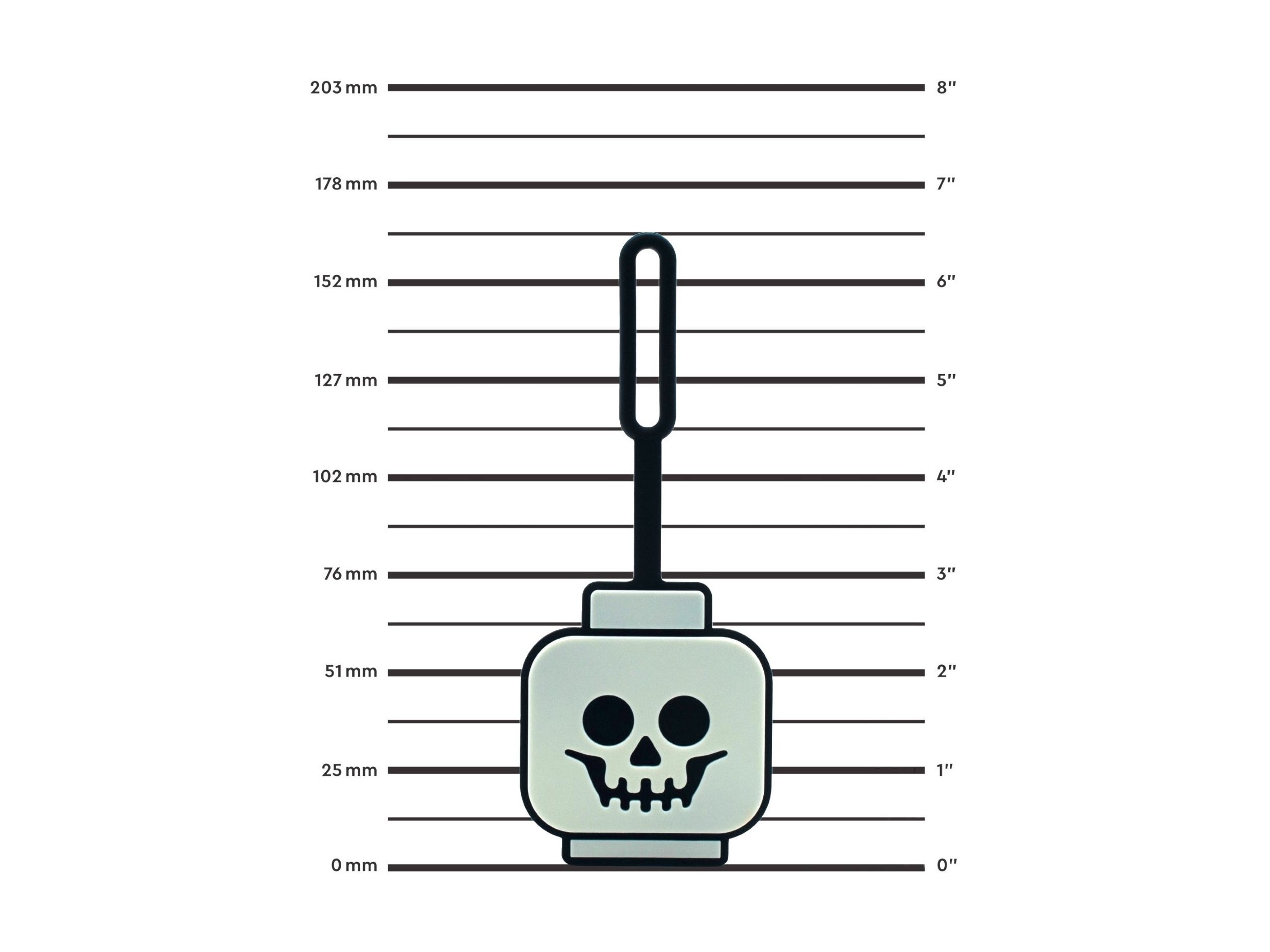 Zobacz takżeTeraz bez problemu znajdziesz swój bagaż, nawet przy słabym oświetleniu, dzięki Zawieszce na torbę z głową szkieletu świecącą w ciemności LEGO®. Ta elastyczna, silikonowa zawieszka ma świecącą w ciemności głowę szkieletu LEGO z przodu i powierzchnię do pisania z tyłu, co umożliwia zapisanie danych. Zawieszka ma wytrzymały pasek z pętelką, aby bezpiecznie przymocować ją do plecaka, torby lub walizki. To także świetny pomysł na upominek dla dzieci w wieku od sześciu lat.