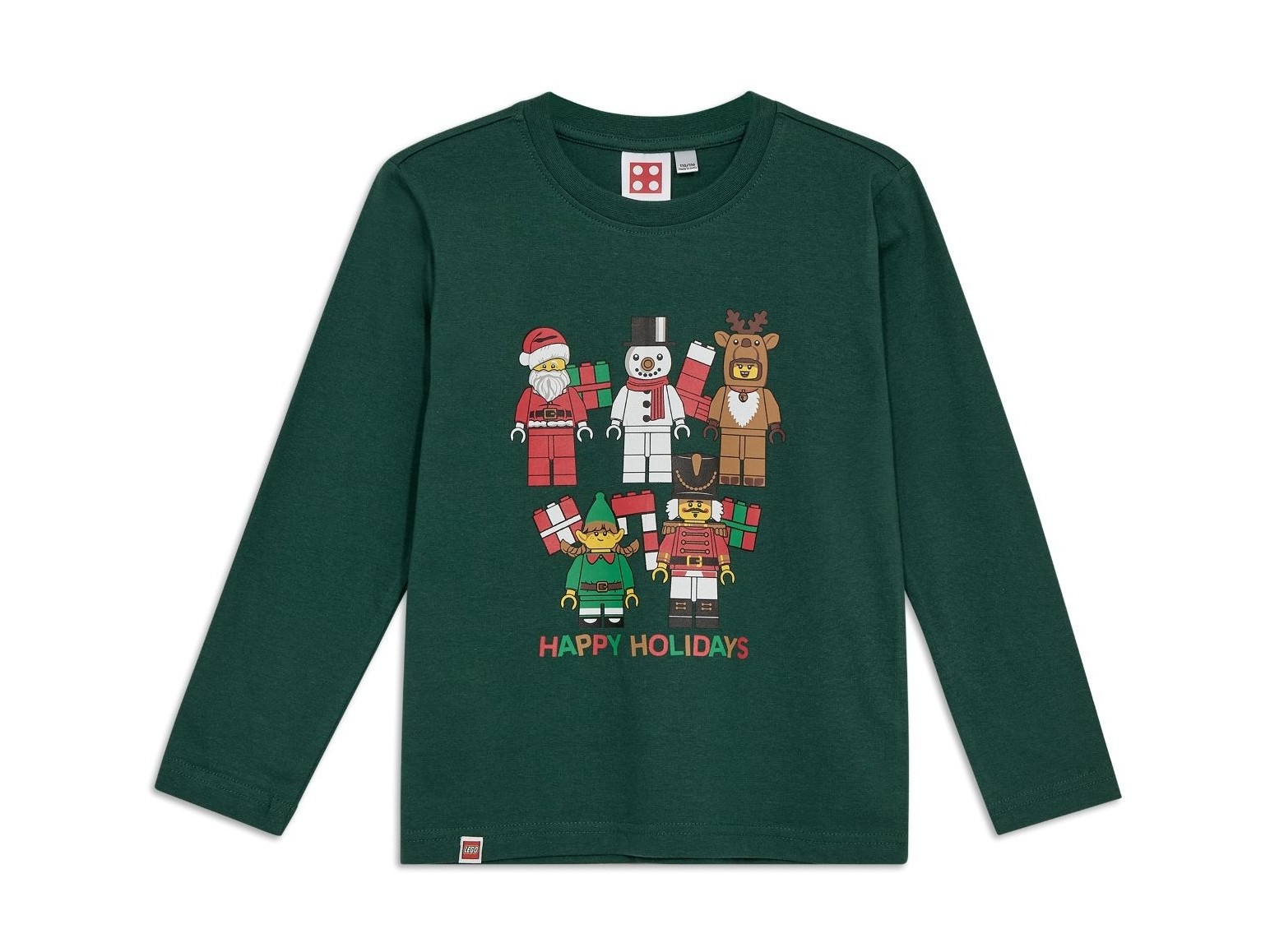 Zobacz 4 zdjęcia produktu LEGO® 5009954 Dziecięca świąteczna koszulka z długim rękawem — ciemnozielona