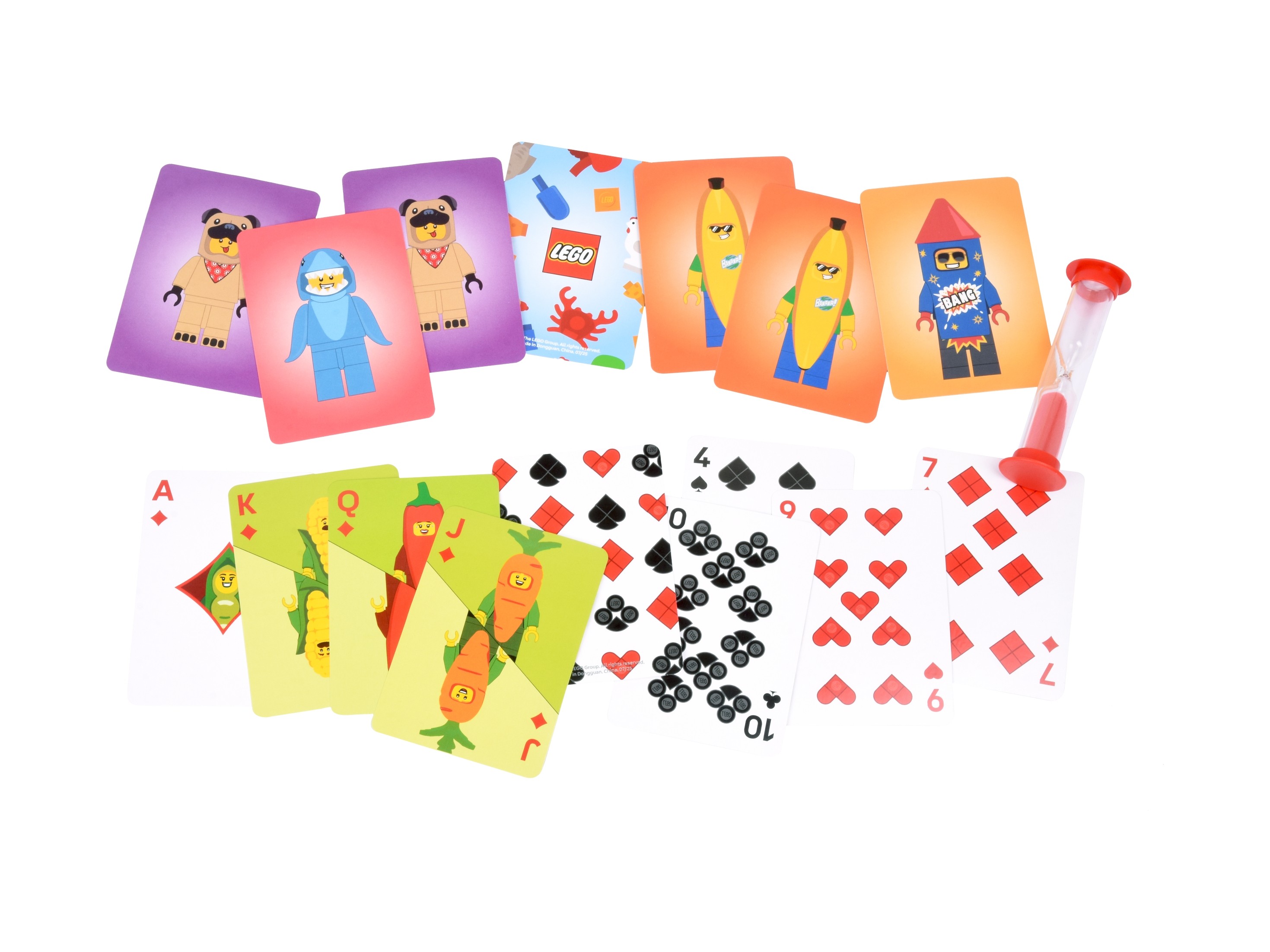 Zestaw kart do gry LEGO® zawiera dwie talie — jedną do klasycznej gry i jedną do gier polegających na dopasowywaniu kart. Oba zestawy kolorowych kart przedstawiają popularne minifigurki LEGO. Karty są zapakowane w kolekcjonerskie pudełko i nadają się dla dzieci w wieku od czterech lat. Do kart dodana jest klepsydra, która pozwala organizować gry na czas lub urozmaicić rozgrywkę. Karty można wykorzystać do gry w pojedynkę lub do ekscytujących rozgrywek z przyjaciółmi i rodziną.