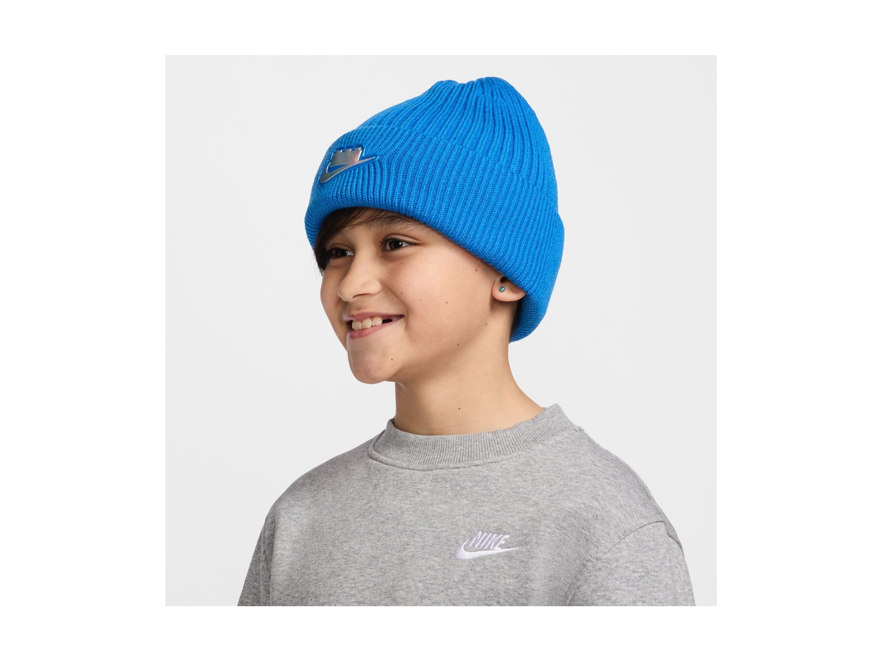 Starsze dzieci stawią czoła niskim temperaturom dzięki czapce beanie Peak z kolekcji Nike x LEGO®. Ta czapka z prążkowanej dzianiny w kolorze kobaltowym ma kopułowy kształt i podwinięty brzeg, dzięki czemu fani sportu mogą cieszyć się ciepłem i modnym wyglądem. To nieodzowny dodatek na zimę, a także świetny prezent na urodziny lub święta. Czapkę zdobi haftowane logo z przodu, dzięki czemu dzieci mogą pokazać, jak doceniają współpracę Nike x LEGO.