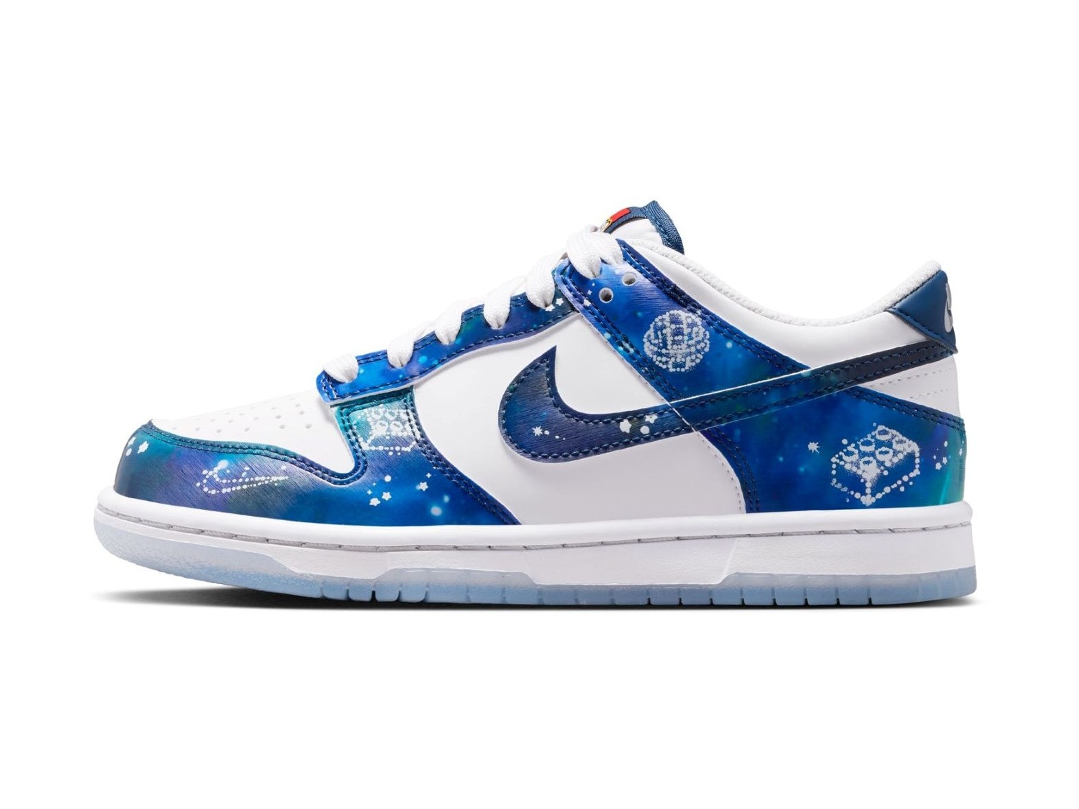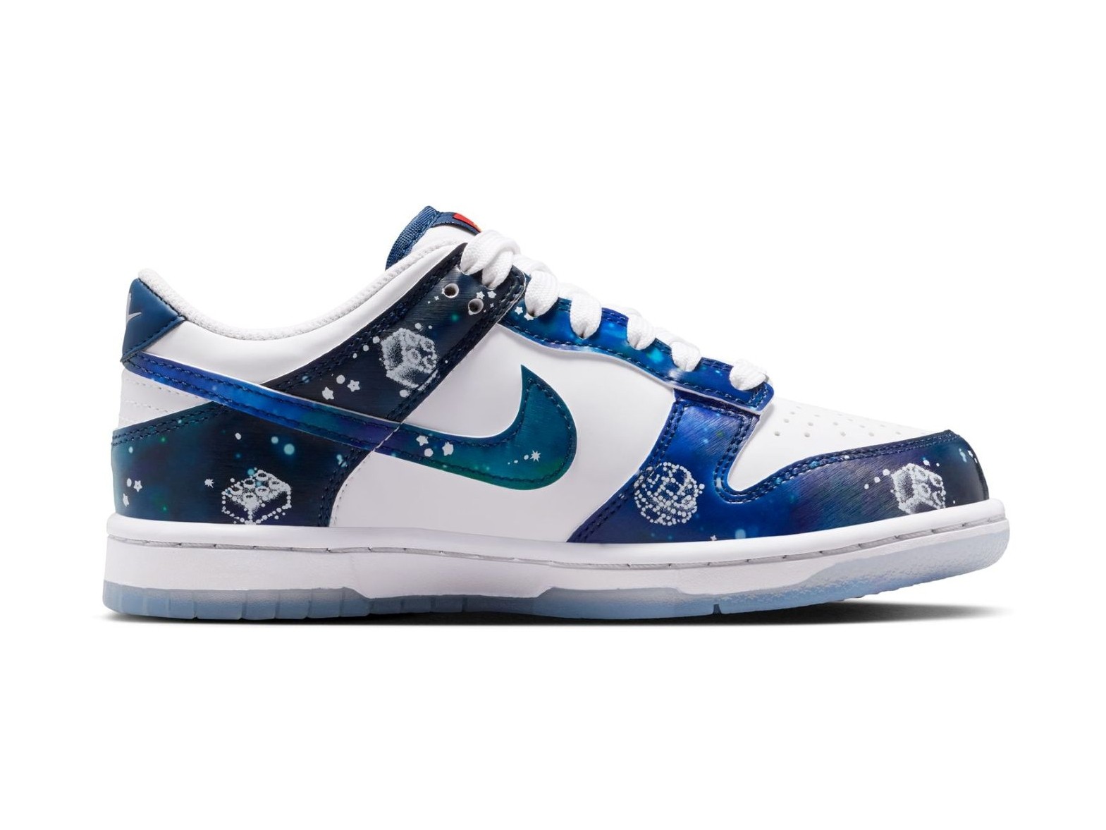 Dzięki sneakersom Nike Dunk Low x LEGO® dzieci zdobędą dodatkowe punkty za styl. Te niesamowite sneakersy, charakteryzujące się płaską, jednoczęściową cholewką z detalami inspirowanymi galaktyką, zapewnią nieziemski styl i wygodę. Te fajne sneakersy mają naszywkę LEGO na języku i charakterystyczny symbol Nike Swoosh z boku, dzięki czemu fani sportu mogą pokazać, jak bardzo cenią tę kultową współpracę.