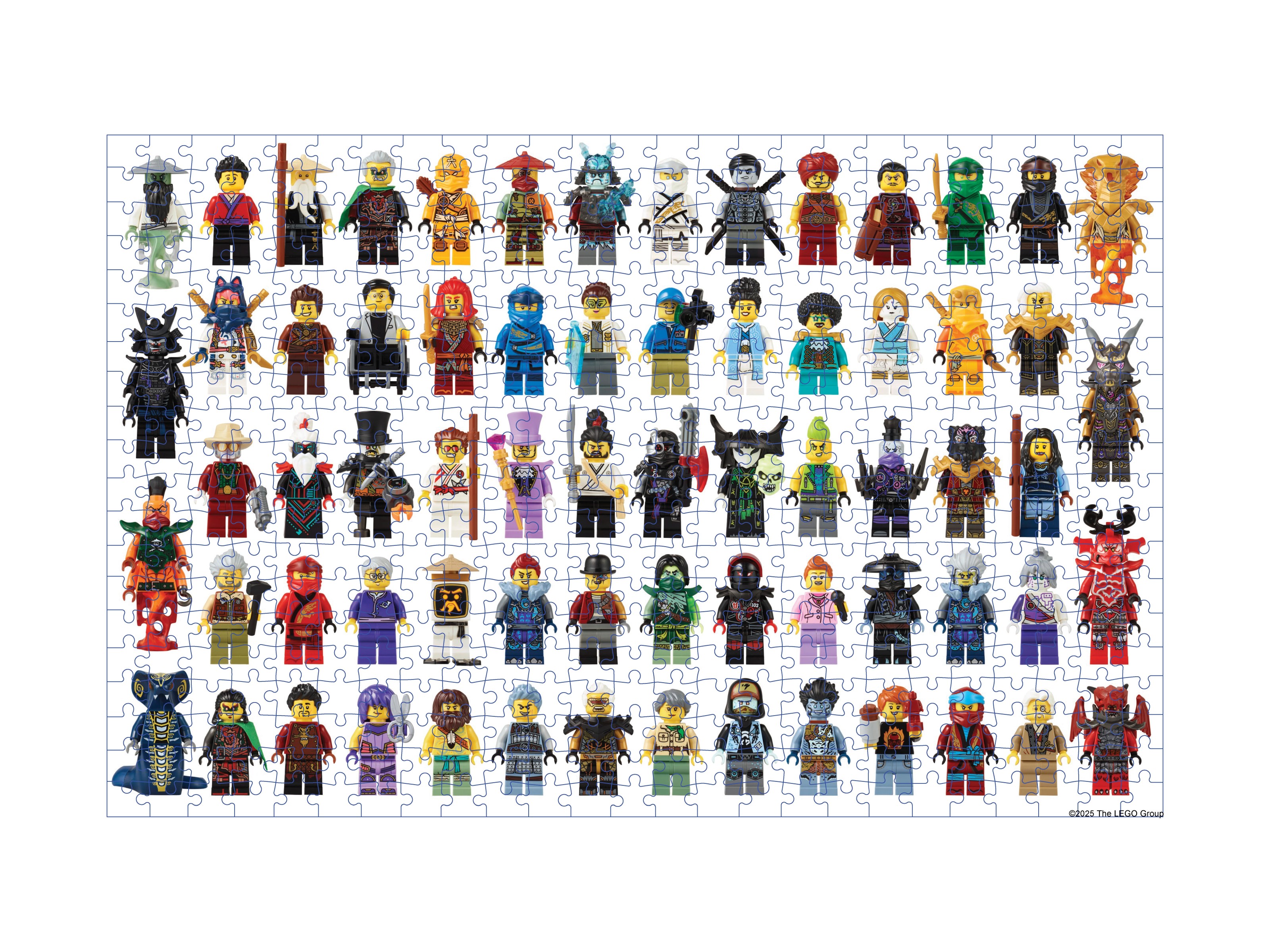 Uczcij 15. rocznicę serialu LEGO® NINJAGO® dzięki tej superfajnej 500-elementowej układance. Puzzle przedstawiają ponad 60 minifigurek postaci z serii NINJAGO, w tym Kaia, Jaya, Lloyda, Zane’a, Nyę, Cole’a i Mistrza Wu, a także wielu złoczyńców, zktórymi walczyli przez te wszystkie lata. Ile z nich jesteś w stanie rozpoznać? Nie martw się, z tyłu puzzli znajduje się przewodnik, dzięki któremu możesz zidentyfikować wszystkich bohaterów. Ta układanka to świetny prezent dla fanów ninja, dzięki któremu cała rodzina spędzi wspaniałe chwile podczas zabawy.