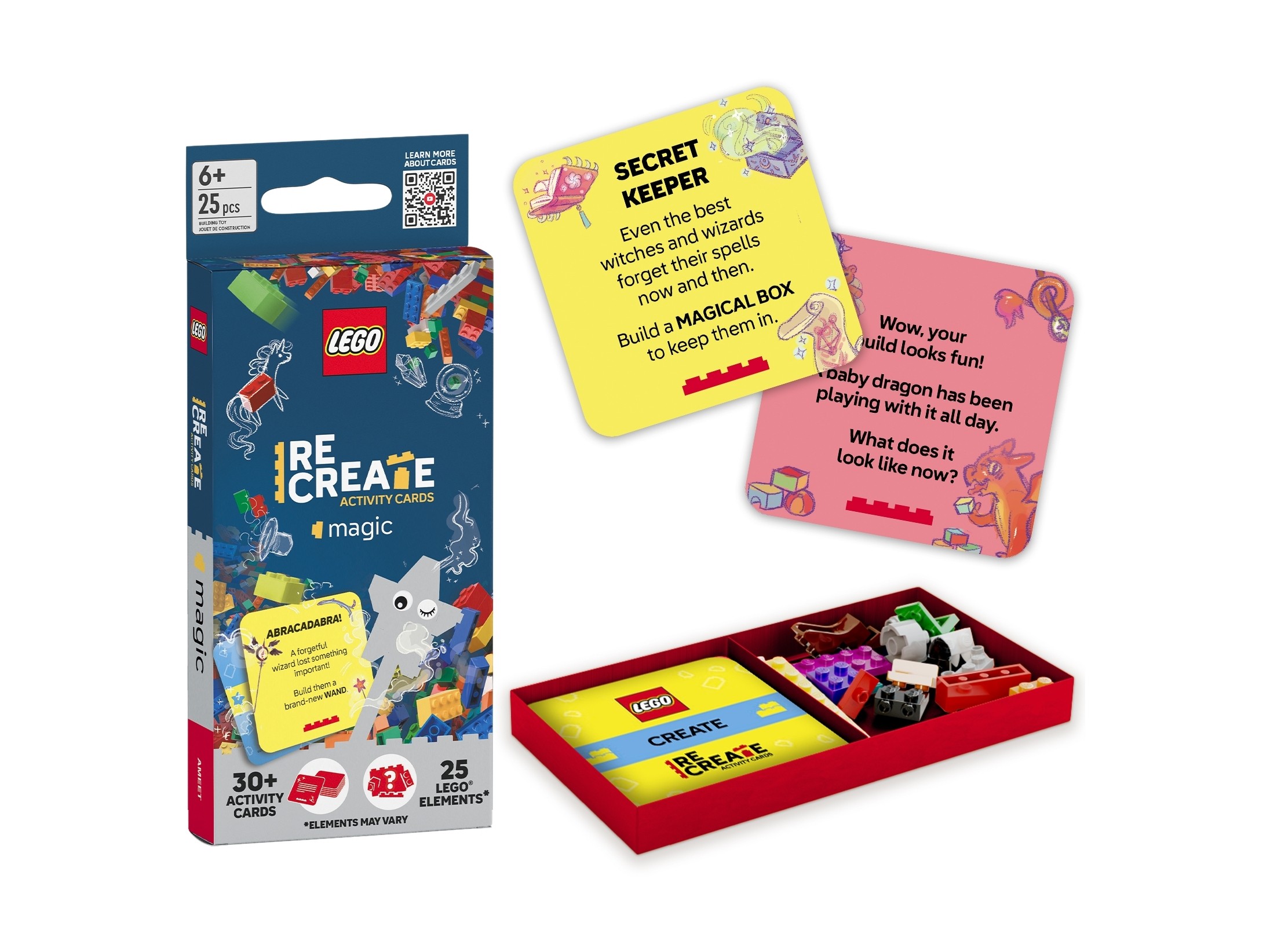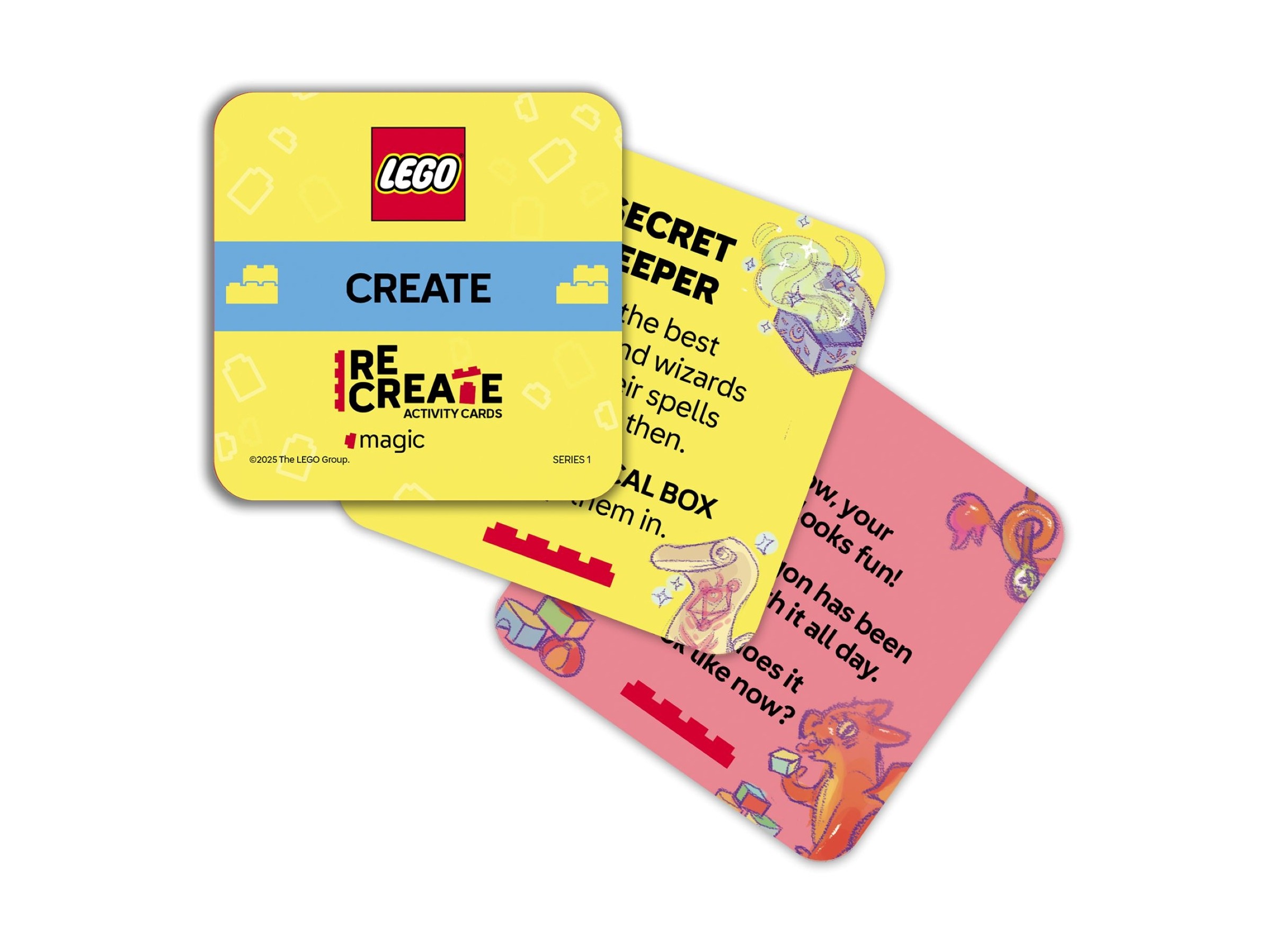 Produkt LEGO Recreate Karty wyzwań: magia został pokazany w bieżącym roku. Produkt przeznaczony jest dla dzieci od 6 roku życia.