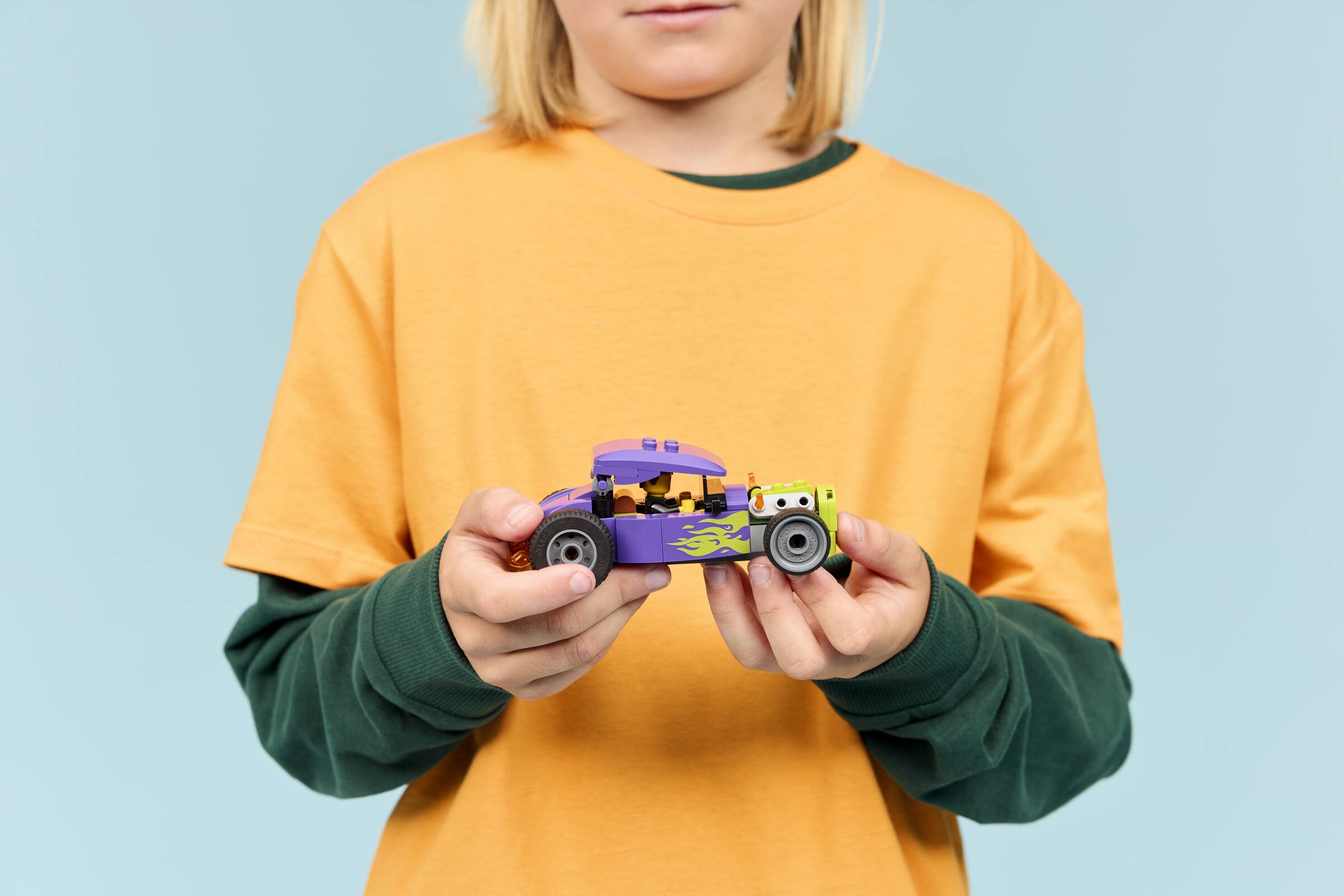 LEGO® 60485 to doskonały zestaw dla młodych miłośników wyścigów, którzy chcą poczuć dreszczyk emocji na torze. Zestaw składa się z klasycznego hot roda, który urzeka swoim fioletowym wyglądem i neonowozielonymi płomieniami. Duże tylne opony i podnoszony dach kokpitu dodają mu charakteru, a minifigurka kierowcy pozwala na odgrywanie ekscytujących wyścigowych przygód.