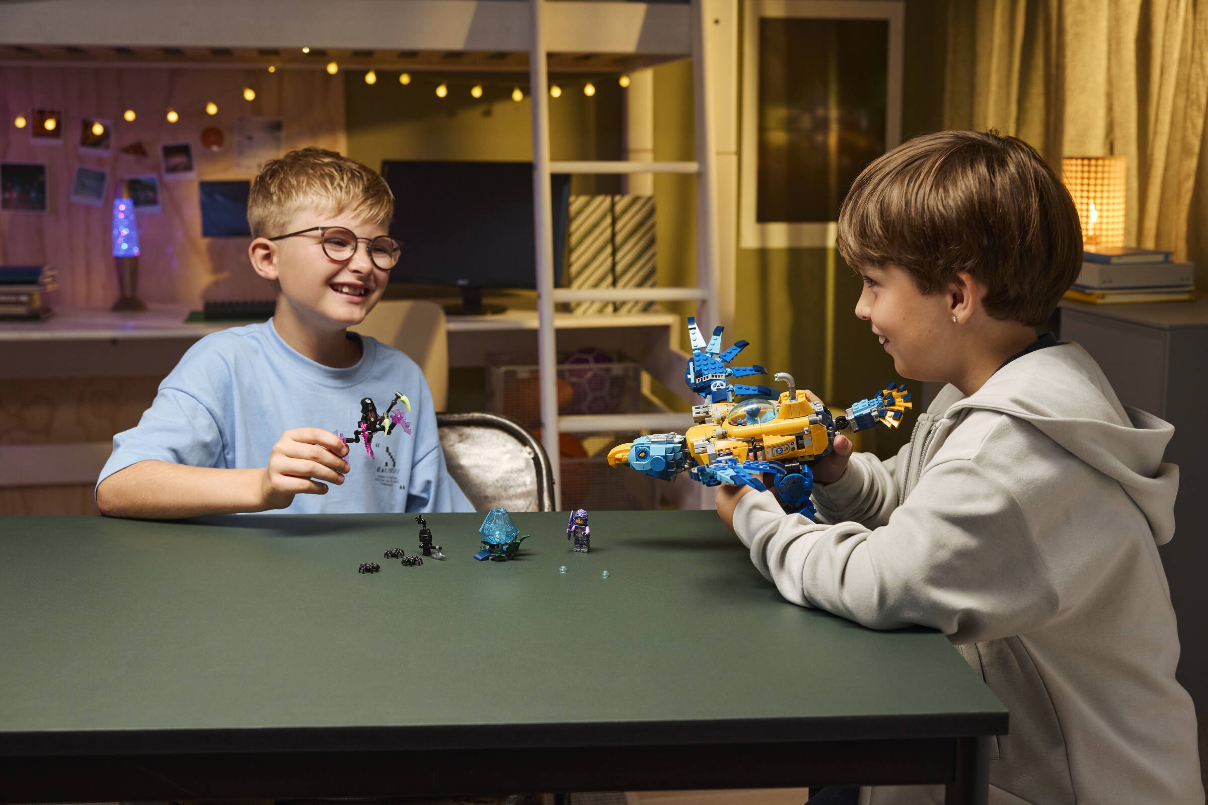 Model LEGO® Krokodylołódź podwodna jest bogaty w detale, które pobudzają wyobraźnię. Wyposażony w dwie wyrzutnie, ukrytą komorę i kokpit na minifigurkę, zapewnia godziny kreatywnej rozrywki. Zestaw zawiera też minifigurki Logana, Zoey i Ariki oraz figurki koszmarnika, dwa pająki i kolekcjonerską figurkę Niebieskiego Skarbeńka. Każda z postaci wnosi coś unikalnego do fabuły, pozwalając dzieciom na tworzenie niezapomnianych historii.