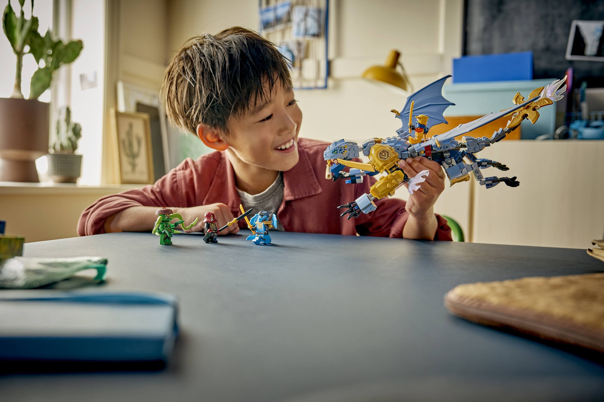 Dla młodych fanów LEGO® NINJAGO®, LEGO® 71855 Bitwa smoka Riyu to prawdziwa gratka. Zestaw zawiera imponującego smoka z ruchomymi skrzydłami i nogami, a także cztery minifigurki, w tym dzielnych ninja Arina i Nyę. Dzieci mogą odtwarzać emocjonujące sceny z czwartego sezonu serialu NINJAGO®: Powstanie Smoków, co zapewnia niezapomniane chwile pełne akcji.