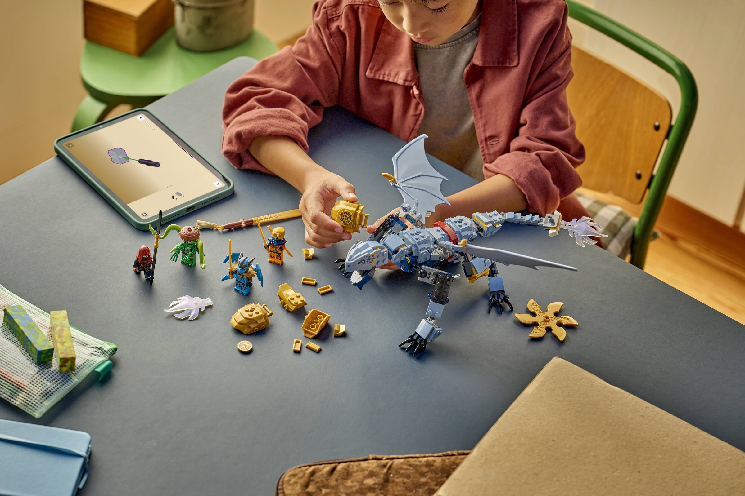 Klocki LEGO® Bitwa smoka Riyu składają się z 347 elementów, które umożliwiają zbudowanie smoka o wymiarach 14 cm wysokości, 34 cm długości i 34 cm szerokości. Dzięki takiej konstrukcji, zabawa nabiera nowego wymiaru, a młodzi budowniczowie mogą poczuć się jak prawdziwi ninja. Dodatkowo, możliwość wymiany broni z innymi zestawami, jak Mech specjalny Cole’a i Zane w smoczej zbroi (71854), dodaje kolejną warstwę interakcji i strategii.