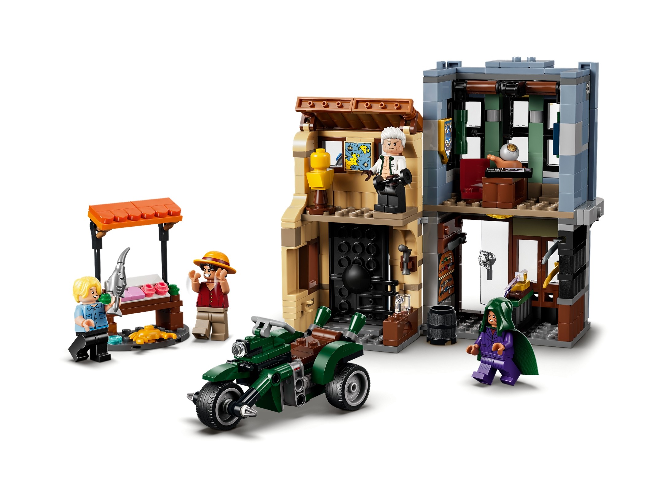 Przenieś się do świata piratów i niesamowitych przygód dzięki LEGO® 75642. Zestaw inspirowany popularnym serialem Netflixa ONE PIECE pozwala dzieciom odtworzyć epickie sceny na targu w Logue Town. Zawiera minifigurki ulubionych bohaterów, takich jak Monkey D. Luffy, Sanji, Dragon i kapitan Smoker, a także realistyczne elementy, takie jak sklep z katanami, centrum rekrutacyjne marynarki i kolorowe stragany z rybami.
