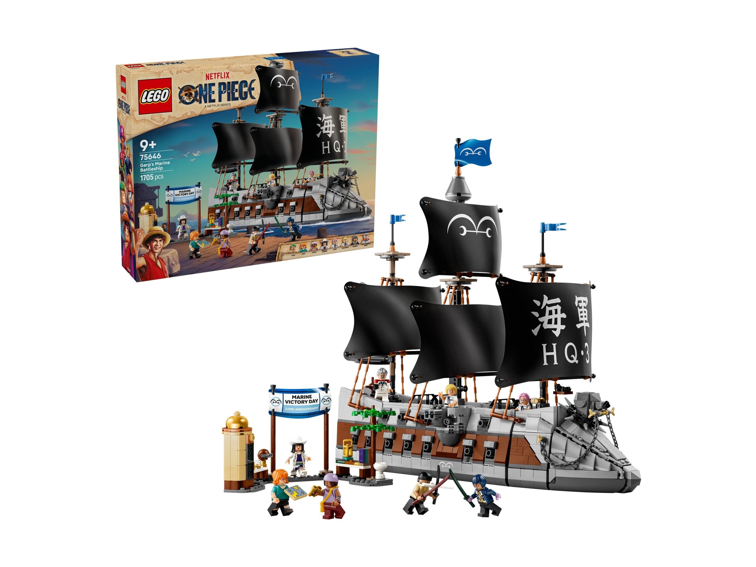 Zestaw klocków LEGO ONE PIECE Okręt Garpa 75646 został przedstawiony w tym roku i składa się z 1705 klocków LEGO®. W klockach znajdziesz jeszcze 8 minifigurek. Zestaw klocków przeznaczony jest dla dzieci i młodzieży od 9 roku życia.
