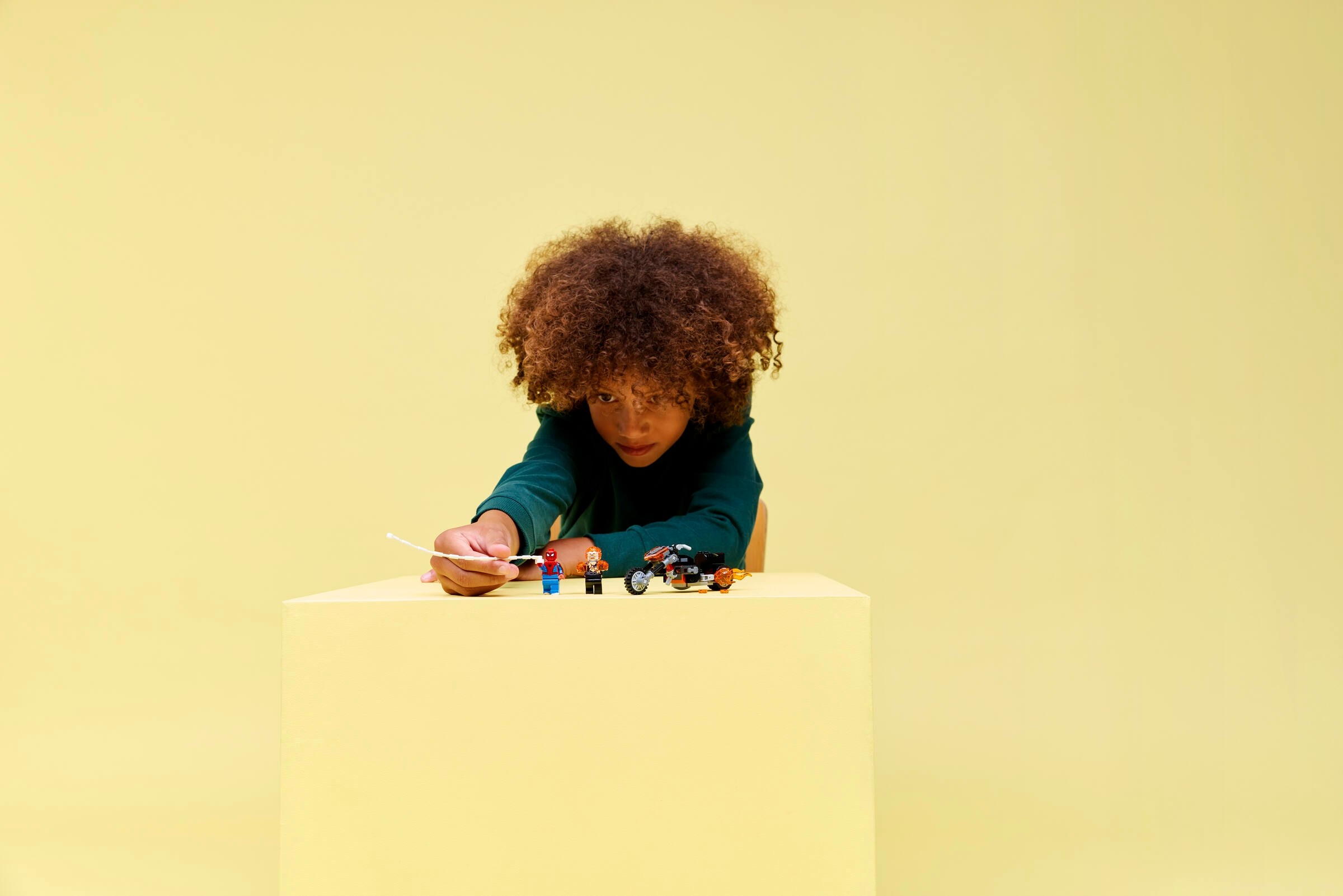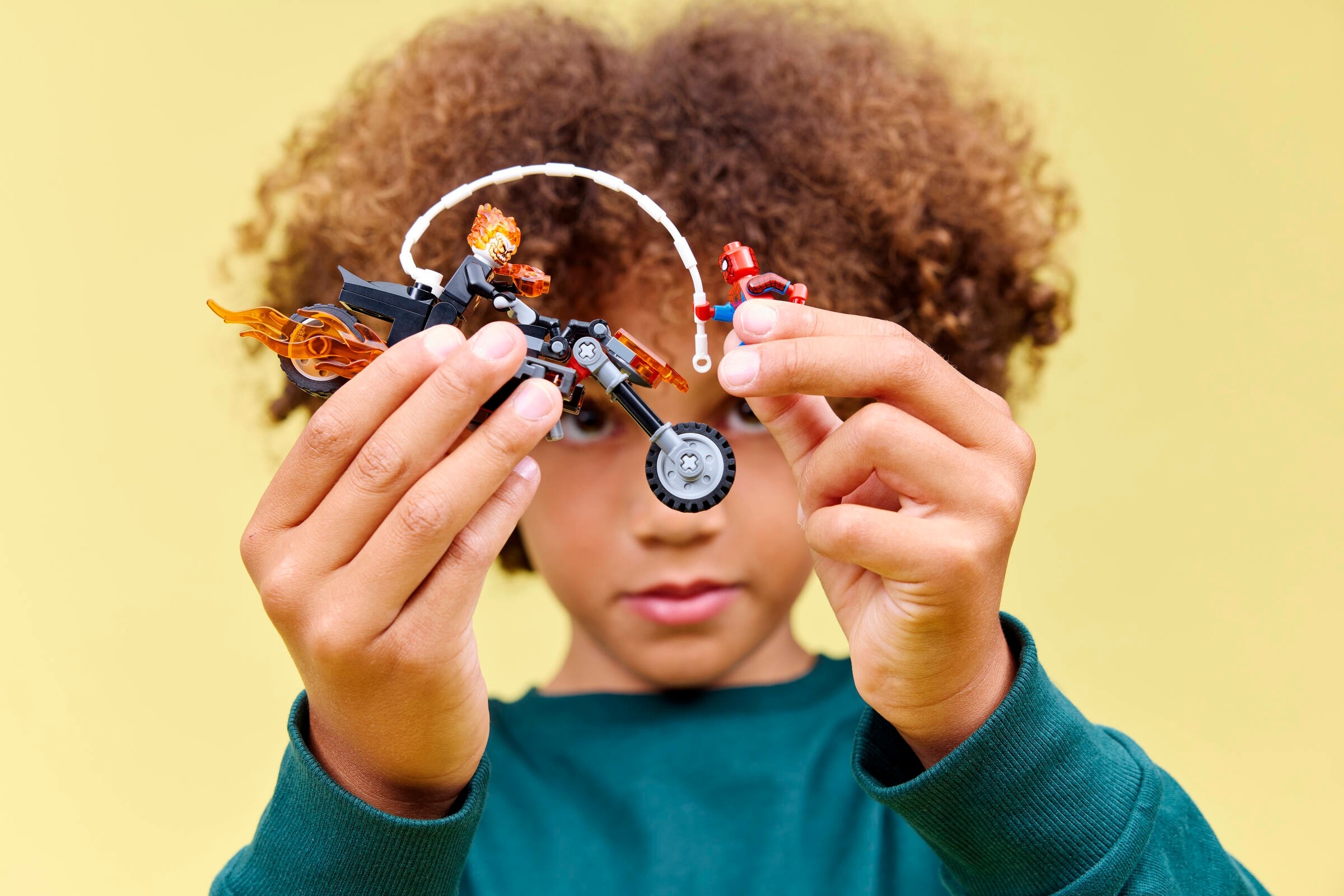 Model LEGO® Spider-Man kontra Ghost Rider na motocyklu z pewnością zachwyci każdego fana Marvela. Motocykl Ghost Ridera wyposażony jest w płomienne wydechy i miotacze klocków, co dodaje realizmu każdej zabawie. Minifigurki, takie jak Ghost Rider z płomieniami na głowie i rękach oraz Spider-Man z pajęczą siecią, zapewniają nieograniczone możliwości kreatywnej zabawy.