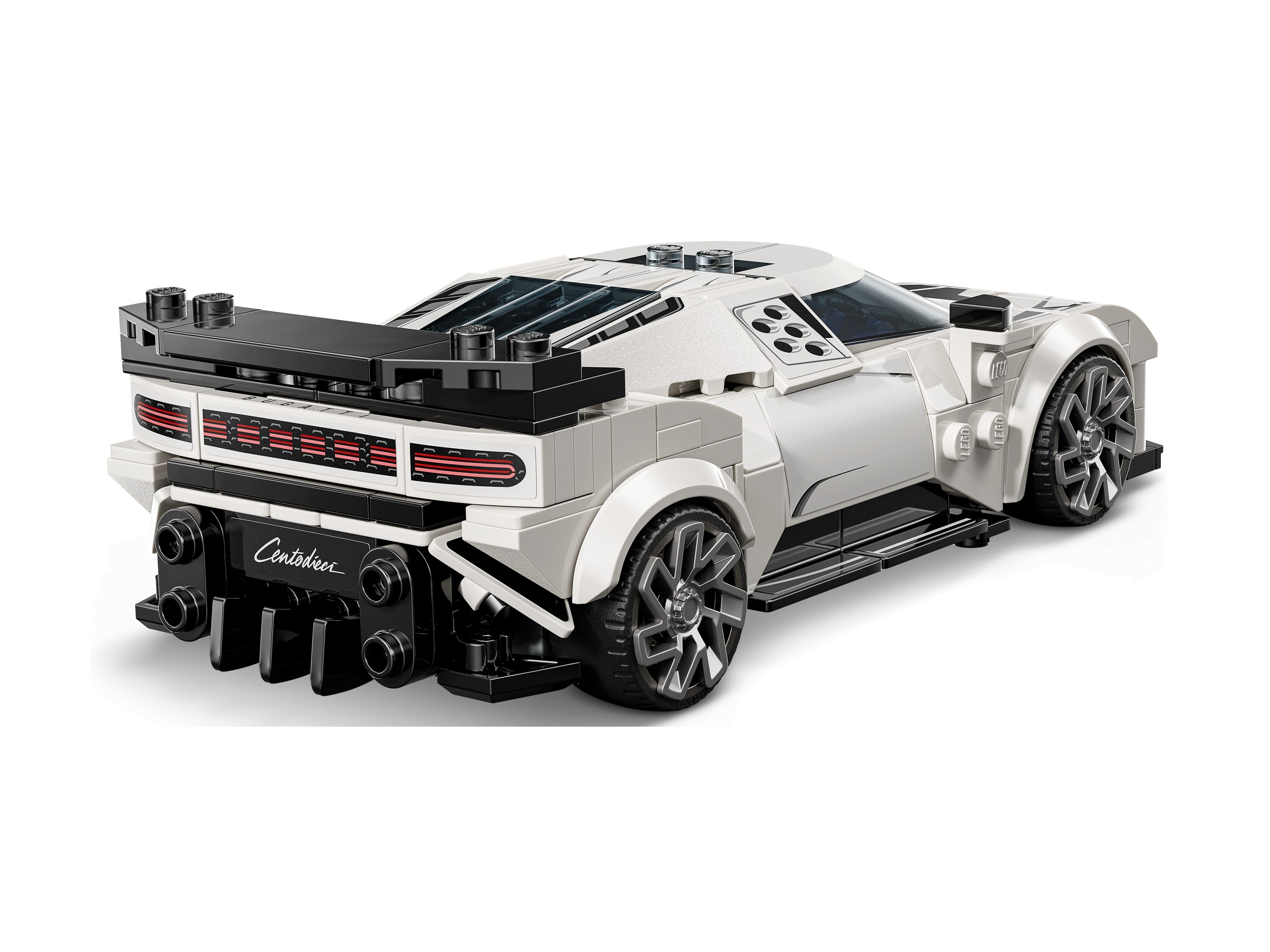 Model samochodu Bugatti w wersji LEGO® obejmuje pięć okrągłych wlotów powietrza z boku hipersamochodu Centodieci, wyjątkowe felgi, światła, grill w kształcie podkowy, wystającetylne skrzydło i cztery tylne rury wydechowe. Zestaw LEGO zawiera również minifigurkę kierowcy Bugatti, którą dzieci mogą posadzić za kierownicą i odgrywać wyścigi.