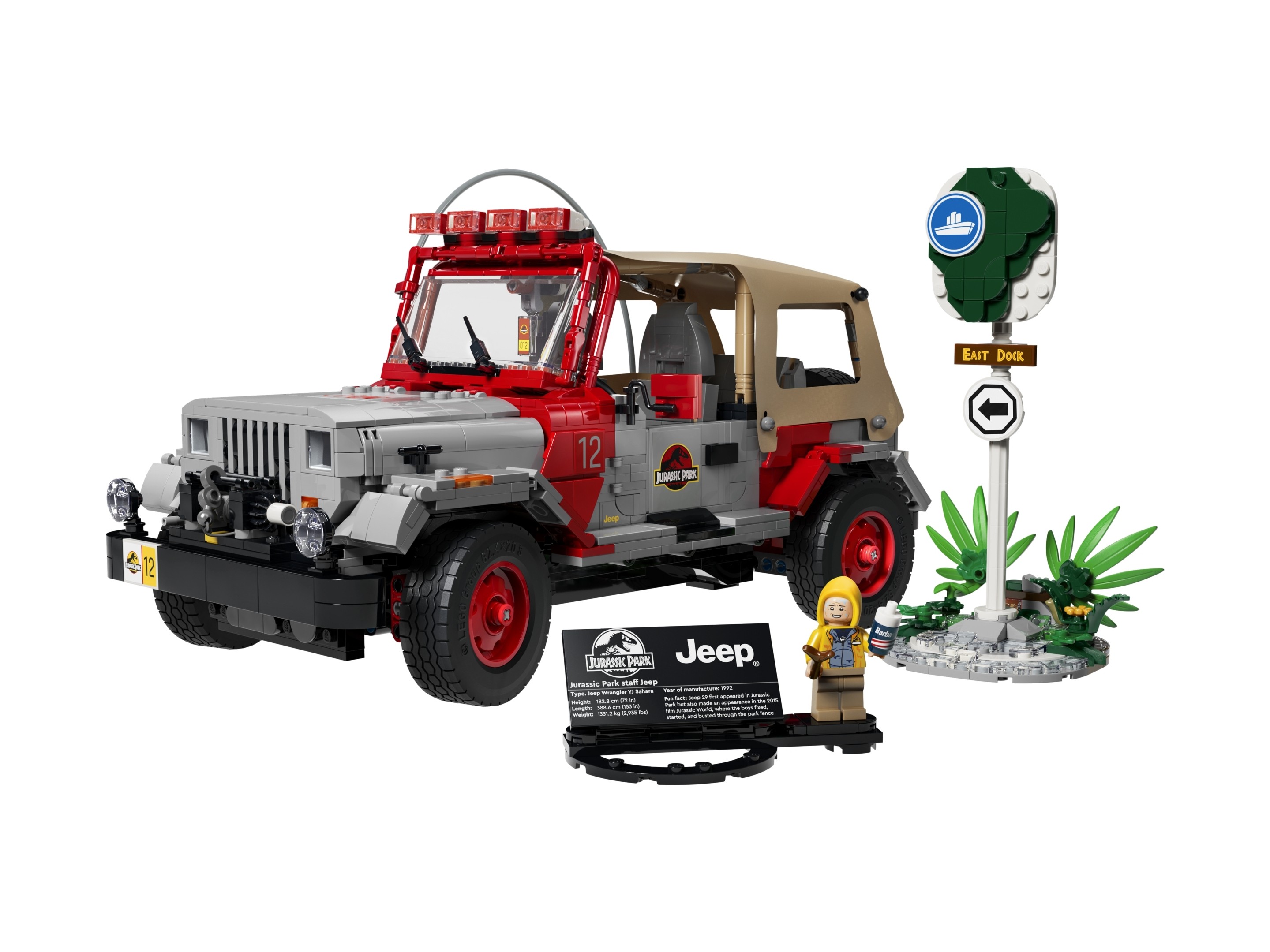 Model LEGO® Jurassic Park Jeep® Wrangler to nie tylko gratka dla fanów filmów, ale także nie lada wyzwanie konstrukcyjne. Składający się z 1924 elementów zestaw oferuje mnóstwo satysfakcji z budowania, a także możliwość odtworzenia kultowych scen z filmu Park Jurajski. Dodatek w postaci minifigurki Dennisa Nedry'ego oraz tabliczki informacyjnej dopełnia całości.