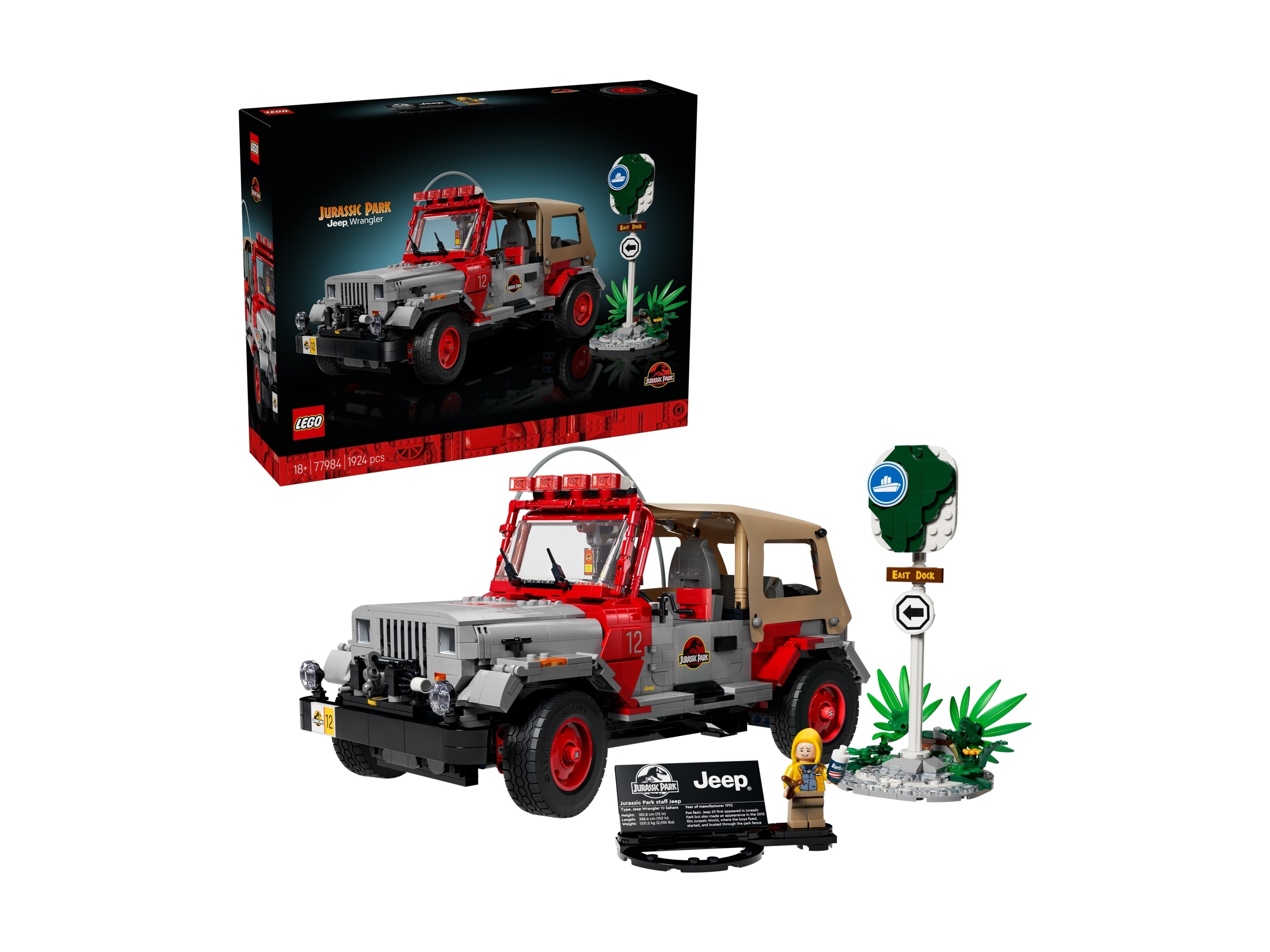 Zestaw klocków LEGO 77984 Jurassic Park Jeep® Wrangler został przedstawiony w tym roku i zbudowany jest z 1924 klocków LEGO®. W zestawie klocków znajdziesz również 1 minifigurkę. Klocki przeznaczone są dla dorosłych od 18 roku życia.