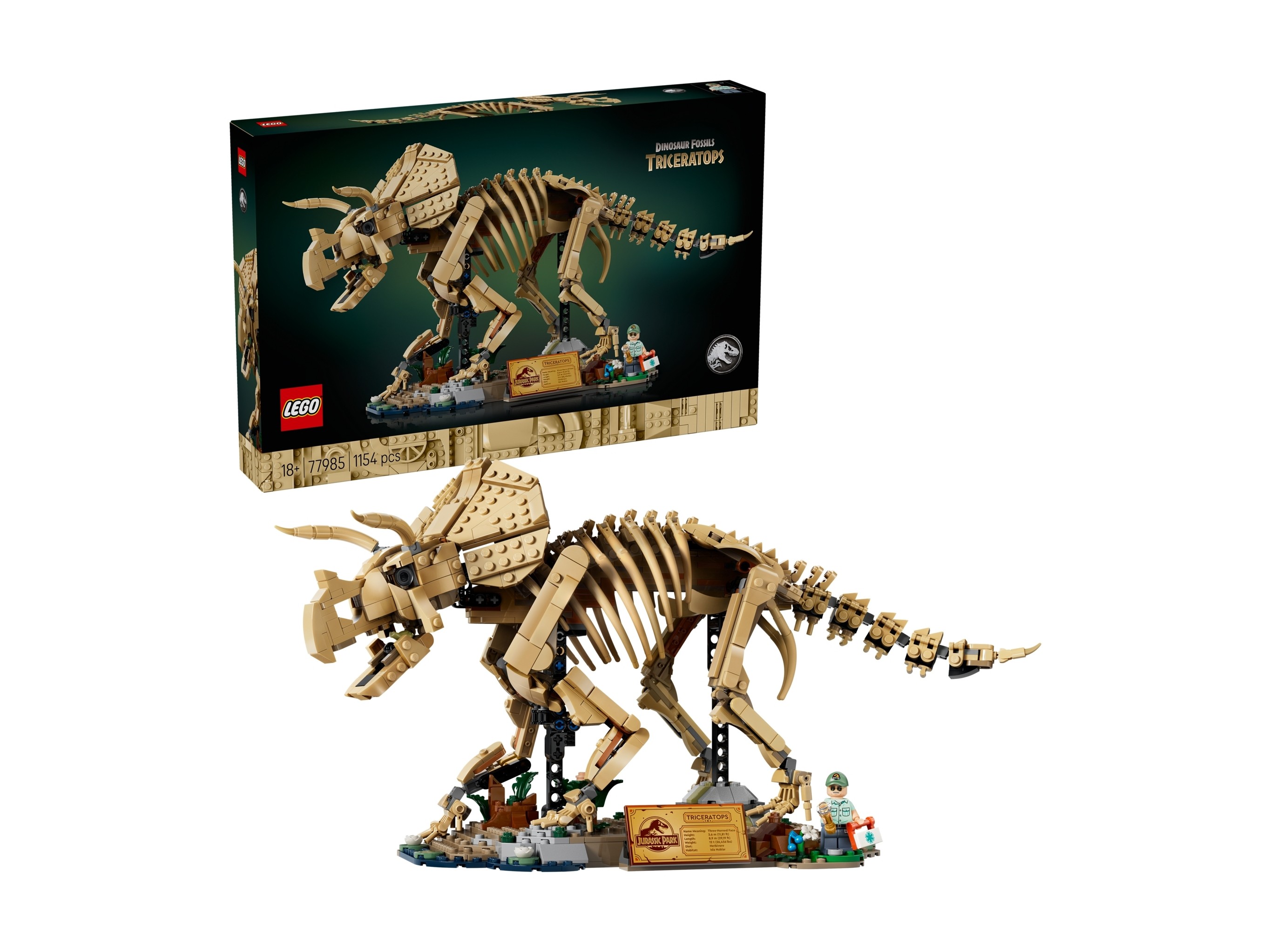 Zestaw klocków LEGO Jurassic World 77985 Szkielety dinozaurów: triceratops został pokazany w tym roku i składa się z 1154 klocków LEGO®. W klockach znajdziesz jeszcze 1 minifigurkę. Klocki przeznaczone są dla dorosłych powyżej 18 roku życia.