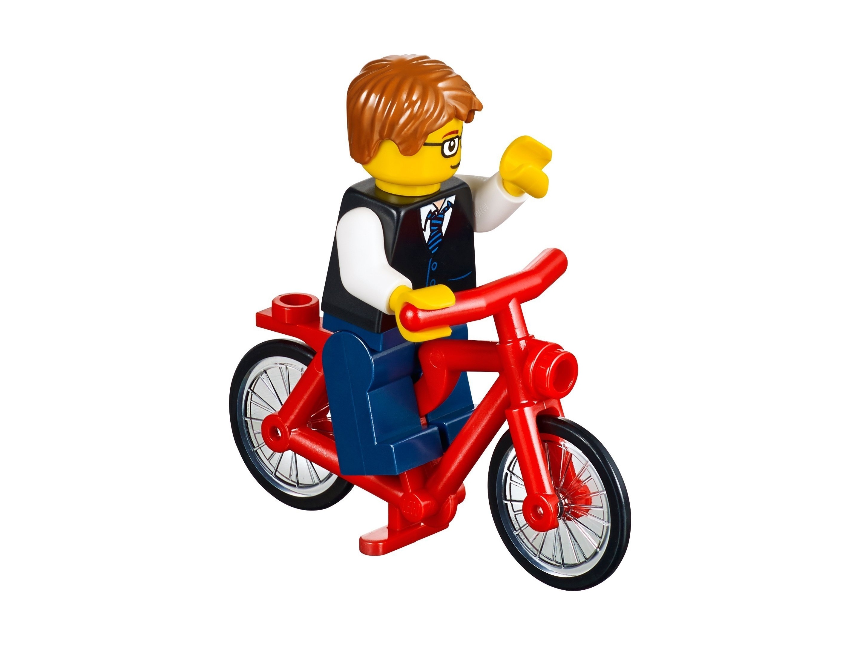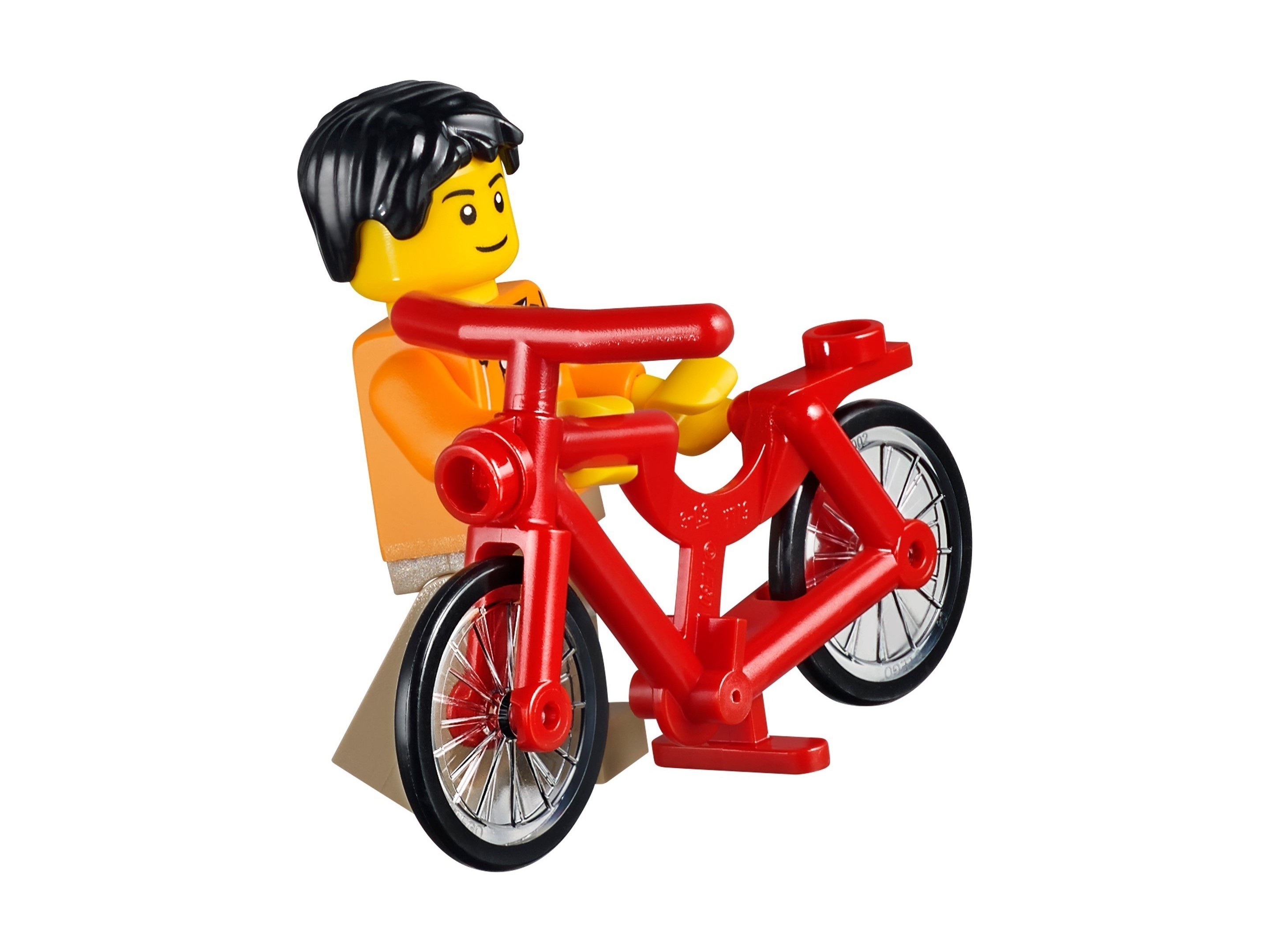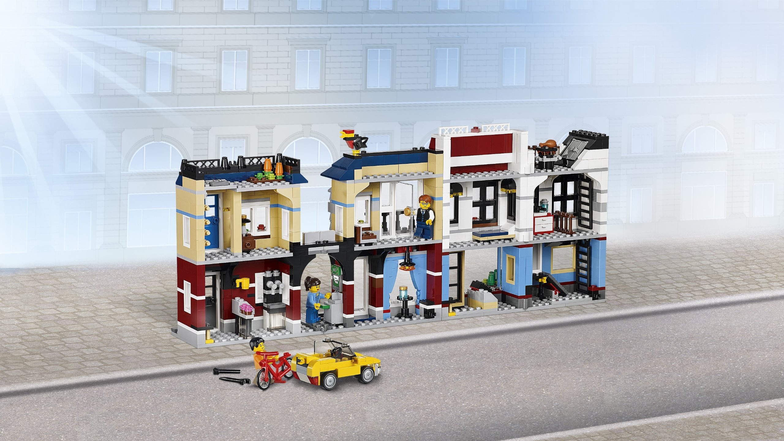 Zbuduj świat pełen miejskich przygód, bawiąc się ciekawym modelem typu 3 w 1 — Miasteczko. Podawaj pyszne muffinki i kawę espresso klientom odwiedzającym przytulną kawiarnię. Następnie odwiedź znajdujący się po sąsiedzku sklep rowerowy, kup odlotowy czerwony rower, zamontuj go na bagażniku dachowym samochodu i pojedź na wycieczkę za miasto! Zbuduj własną ulicę handlową ze sklepem rowerowym i kawiarnią, na której możesz też umieścić inne budynki LEGO®! Jaki sklep zbudujesz w następnej kolejności? Zestaw można też przebudować, tworząc warsztat naprawy samochodów lub kwiaciarnię. W zestawie 3 minifigurki: 2 mężczyzn i kobieta.