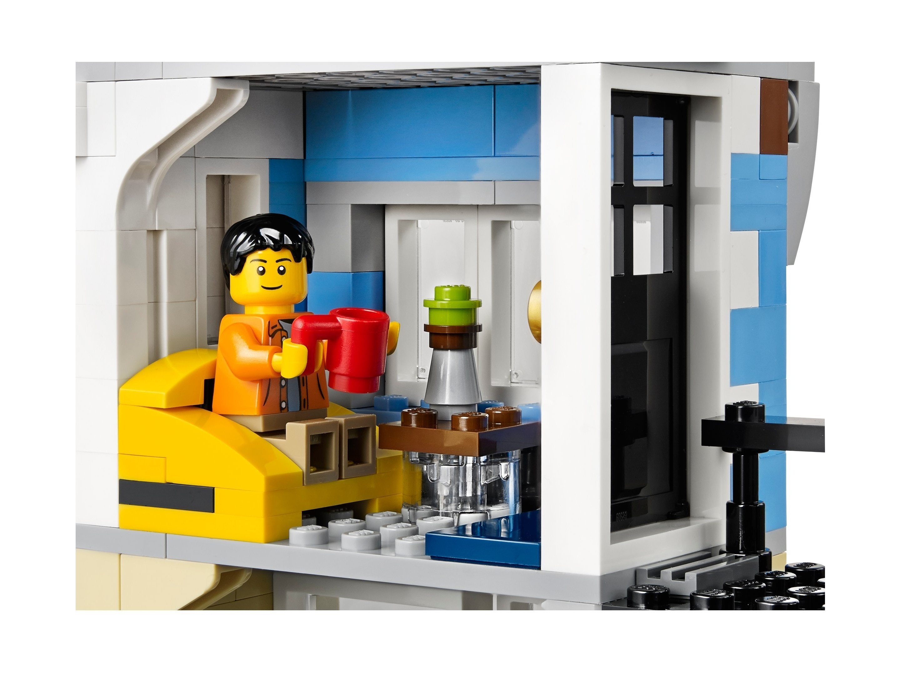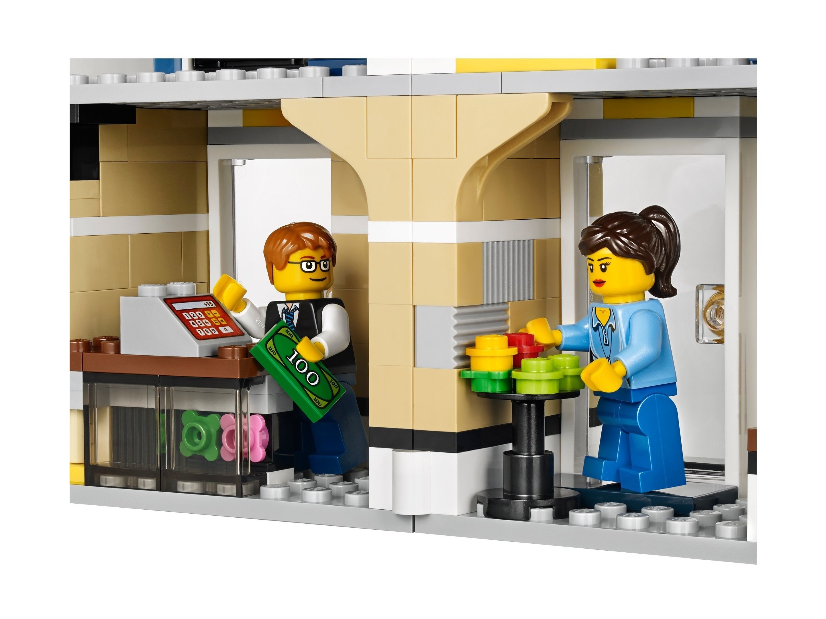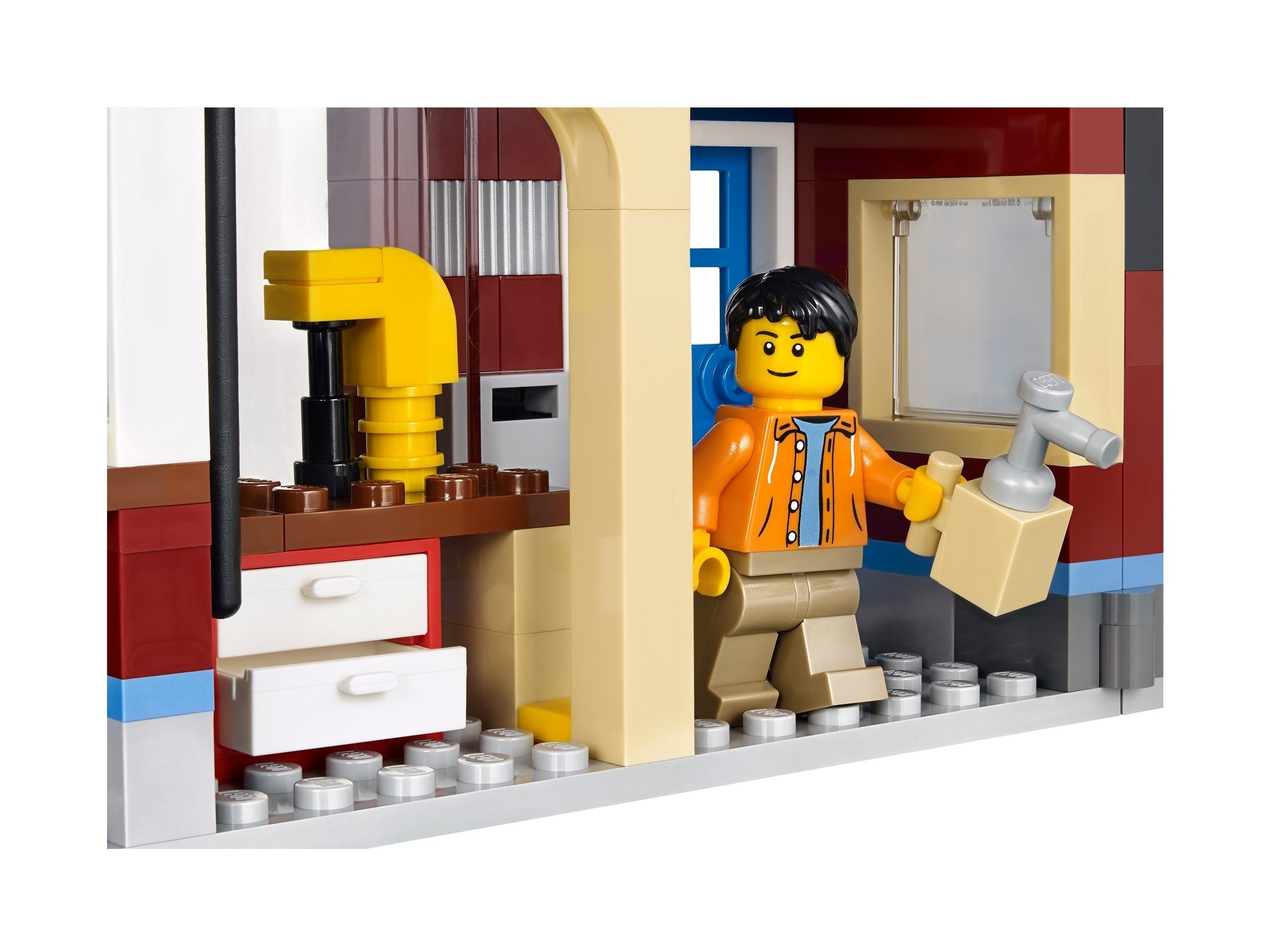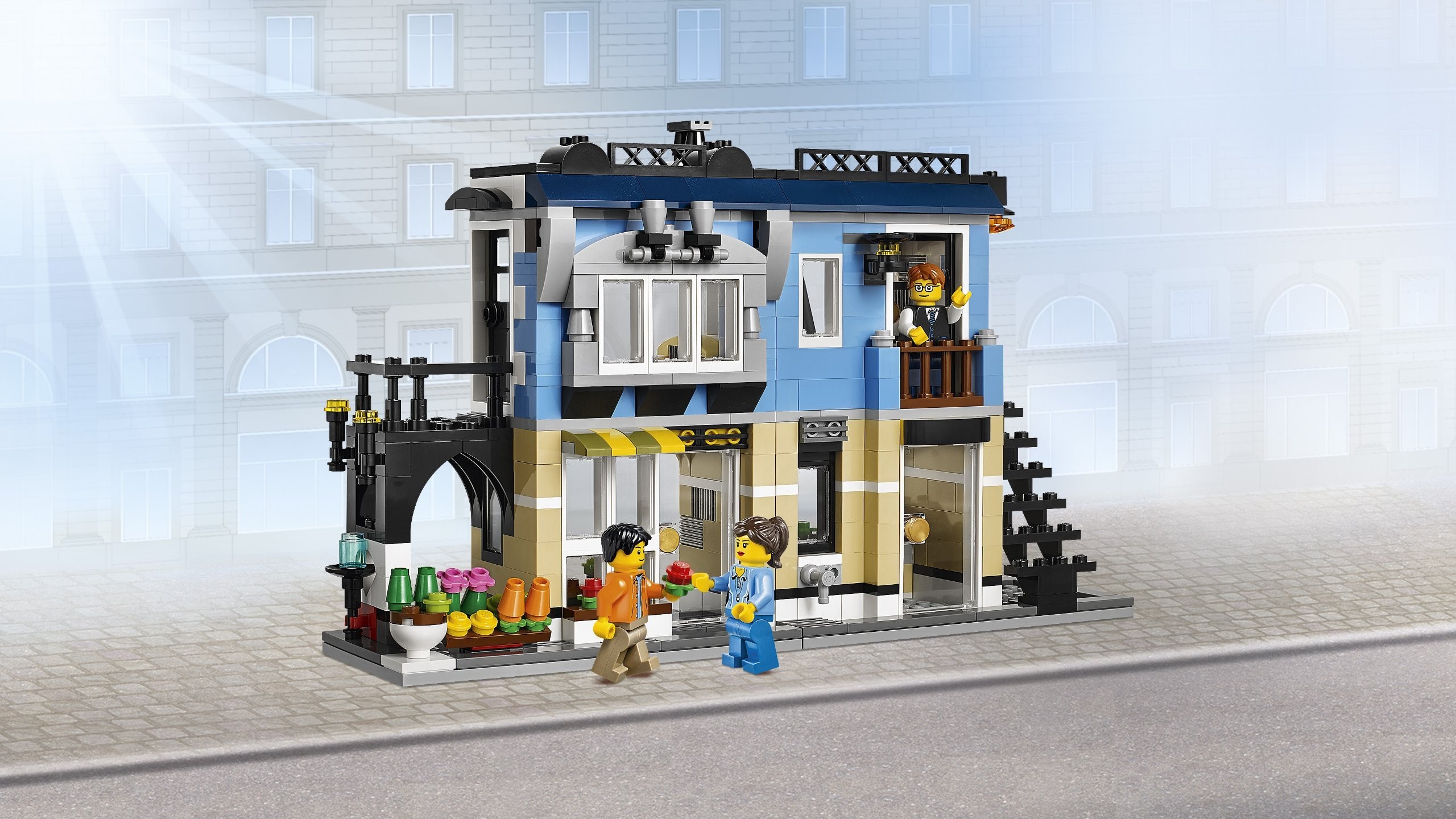 Zbuduj świat pełen miejskich przygód, bawiąc się ciekawym modelem typu 3 w 1 — Miasteczko. Podawaj pyszne muffinki i kawę espresso klientom odwiedzającym przytulną kawiarnię. Następnie odwiedź znajdujący się po sąsiedzku sklep rowerowy, kup odlotowy czerwony rower, zamontuj go na bagażniku dachowym samochodu i pojedź na wycieczkę za miasto! Zbuduj własną ulicę handlową ze sklepem rowerowym i kawiarnią, na której możesz też umieścić inne budynki LEGO®! Jaki sklep zbudujesz w następnej kolejności? Zestaw można też przebudować, tworząc warsztat naprawy samochodów lub kwiaciarnię. W zestawie 3 minifigurki: 2 mężczyzn i kobieta.