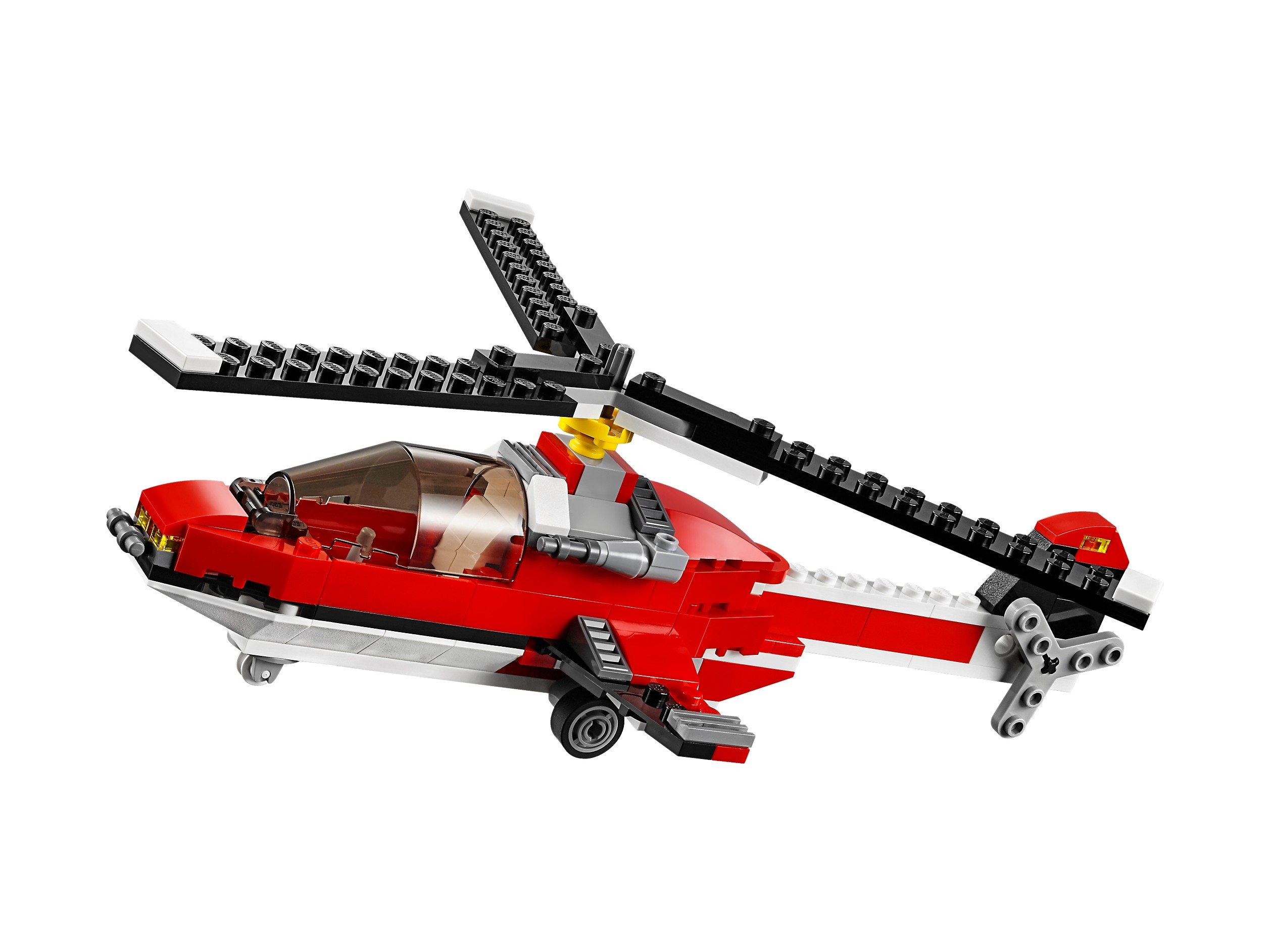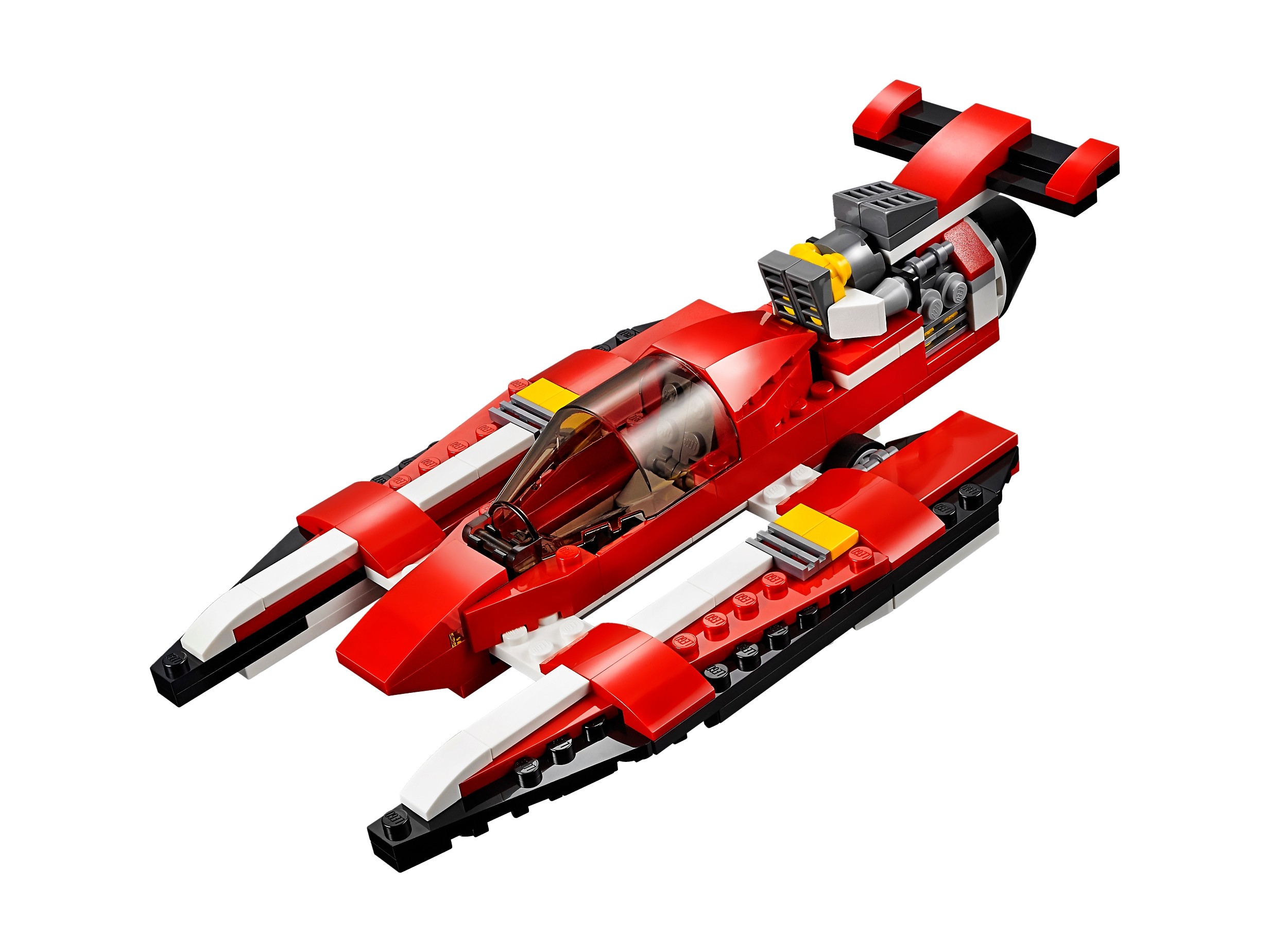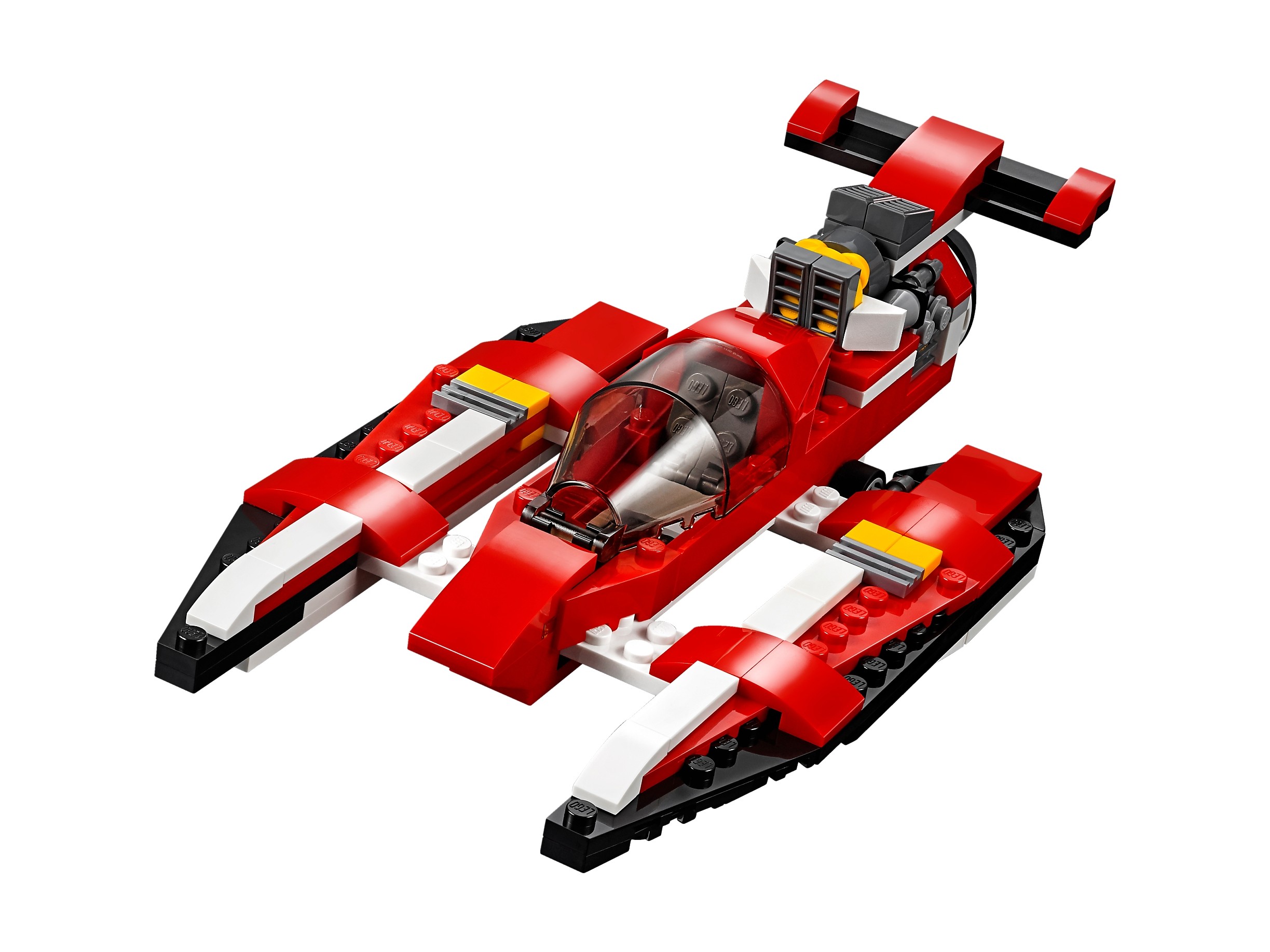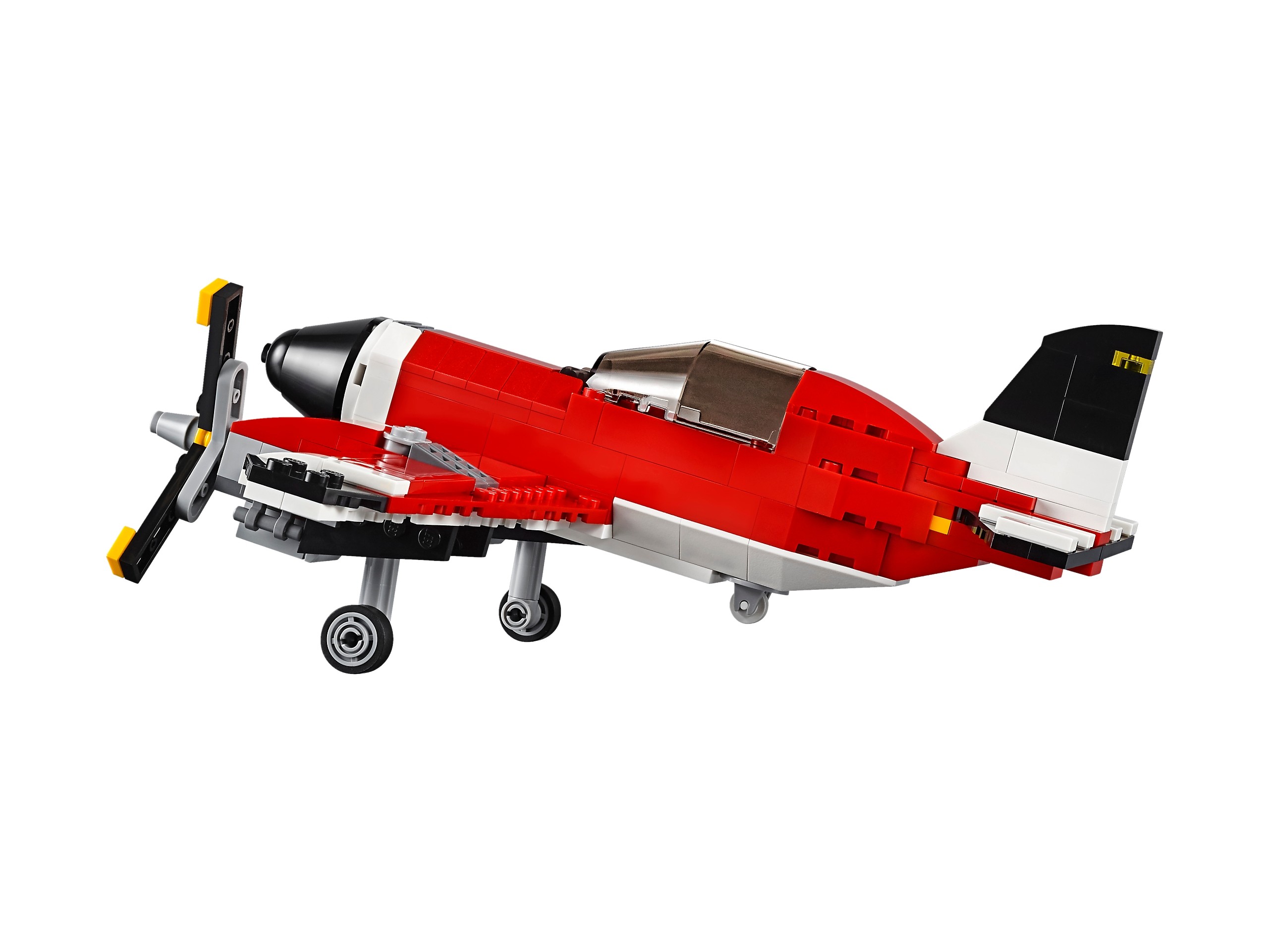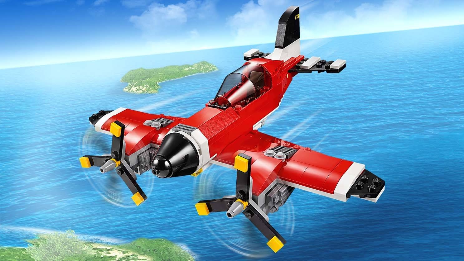 Tego klasycznego samolotu nie możesz przegapić! Jest utrzymany w przepięknej, czerwono-biało-czarnej kolorystyce, ma obracające się śmigła i otwierany kokpit z miejscem na minifigurkę (brak w zestawie). Wejdź na pokład, rozpędź się na pasie i wznieś w przestworza! Później zawróć nad lotnisko, wypuść podwozie i pokaż, co to znaczy idealne lądowanie! Możesz też przerobić swój samolot na supernowoczesny wodolot albo helikopter.