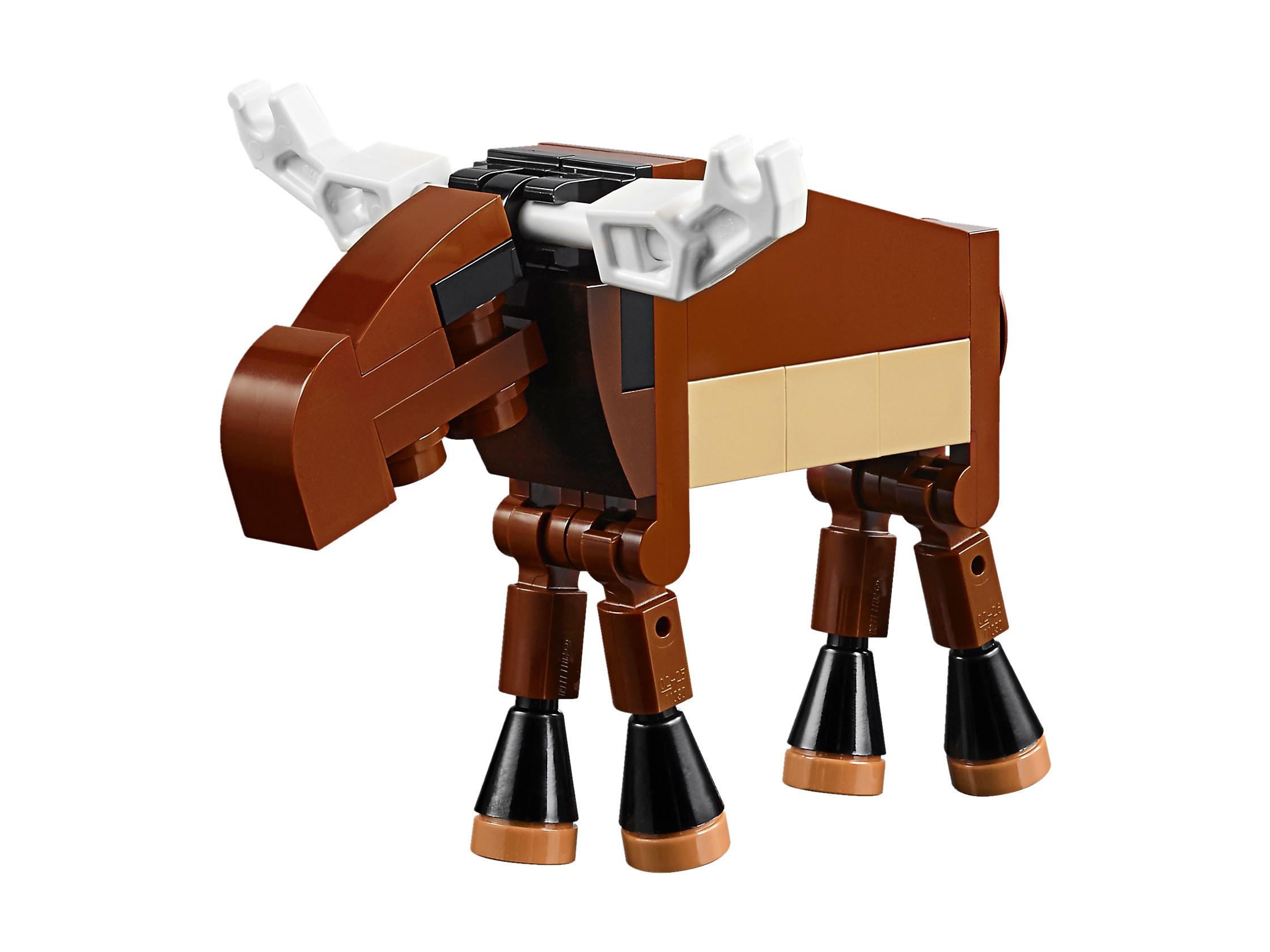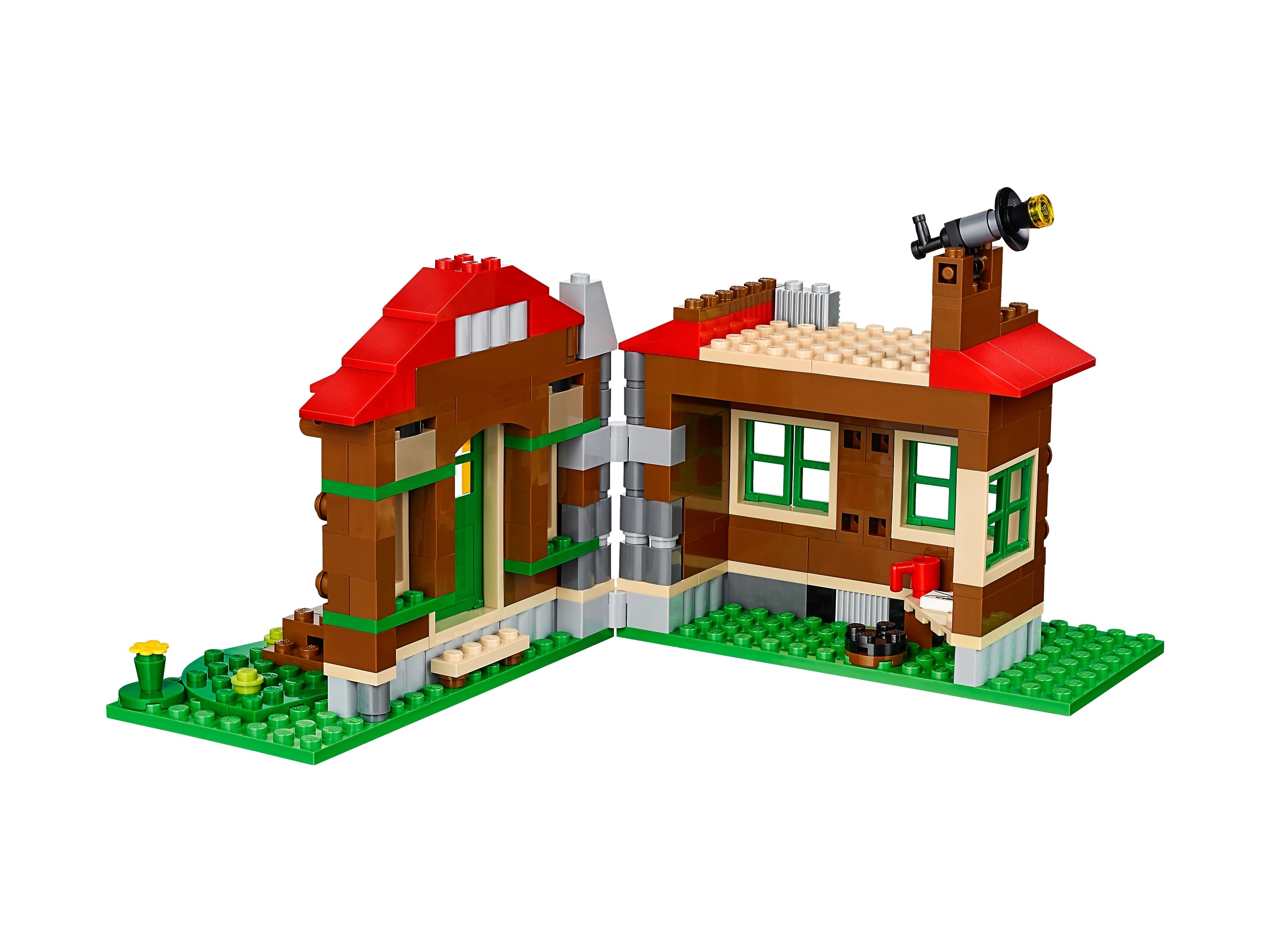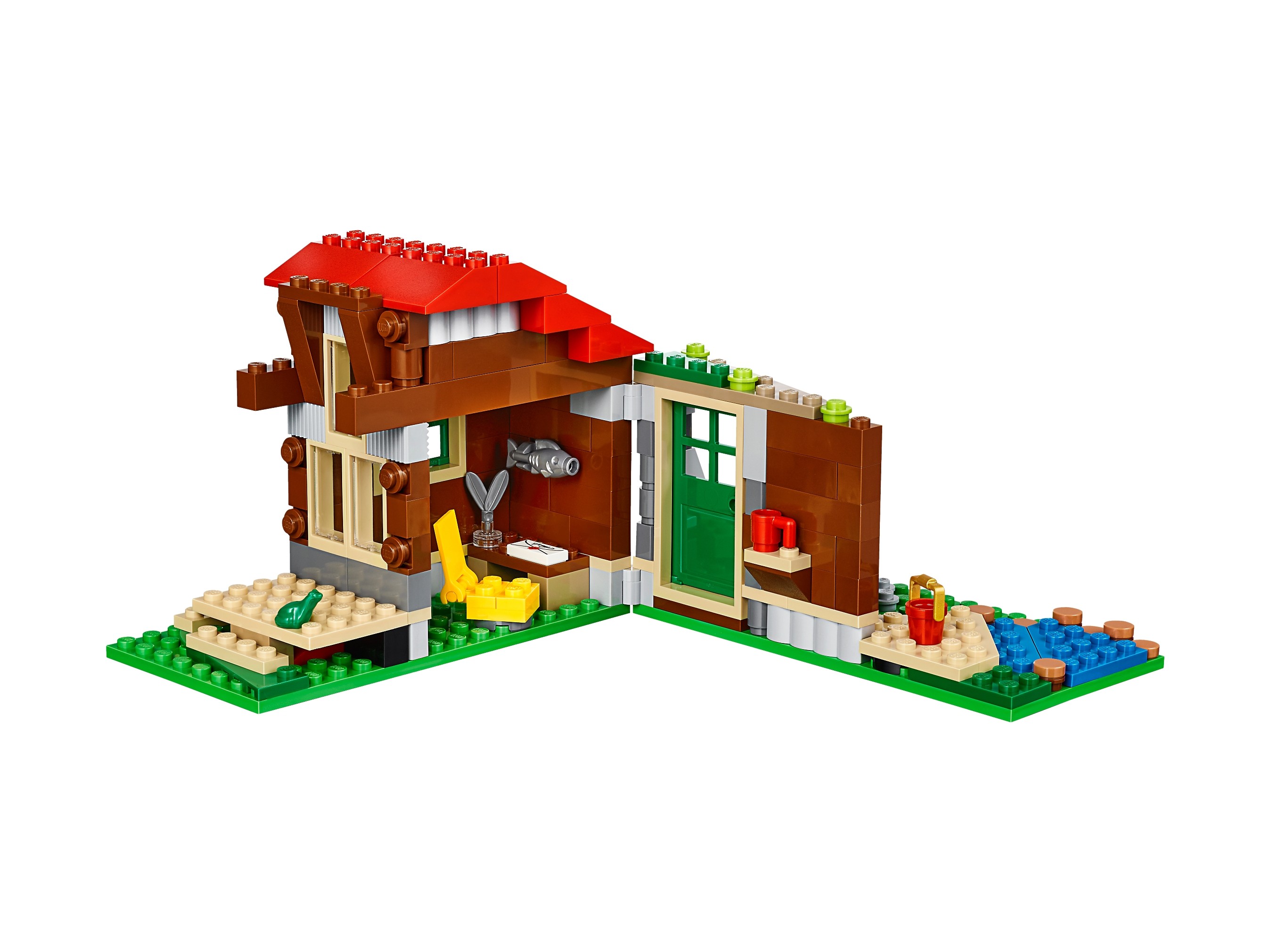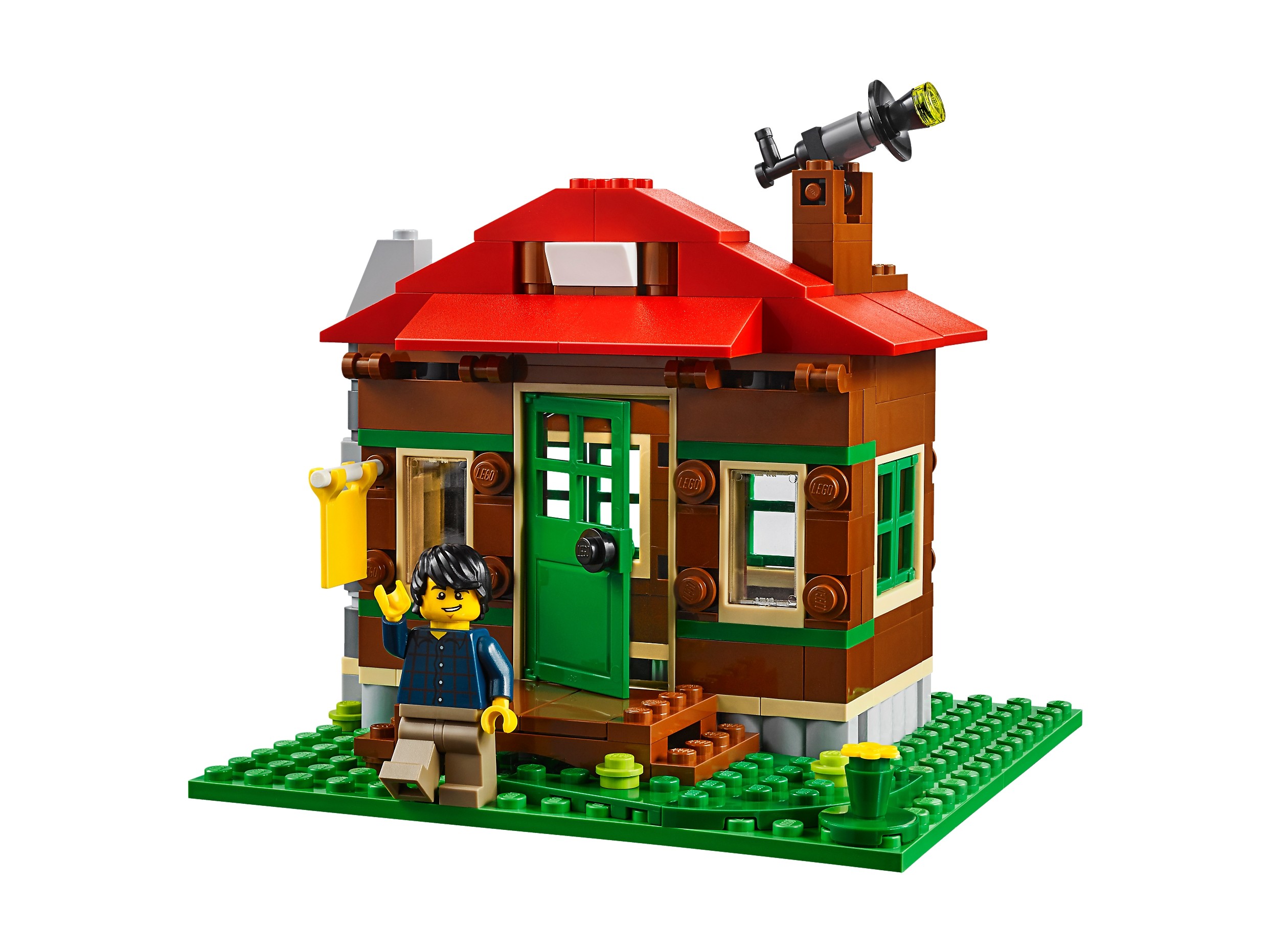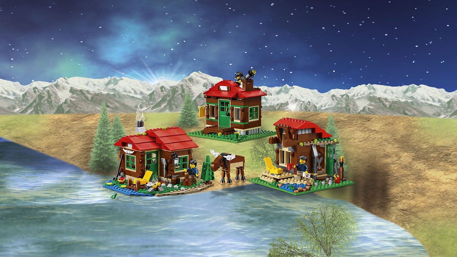 Zbuduj własne wakacyjne zacisze w miłym otoczeniu. Zestaw utrzymany jest w barwach czerwieni, brązu, zieleni i błękitu, a przytulne wnętrze domku jest wyposażone w kuchenkę, łóżko i stół. Możesz narąbać drewna na ognisko, powędkować z balkonu albo po prostu cieszyć się ciszą i spokojem swojego ustronia w towarzystwie łagodnego łosia i małej żabki. Gdy zapragniesz odmiany, możesz przerobić chatkę na obserwatorium lub mały domek.