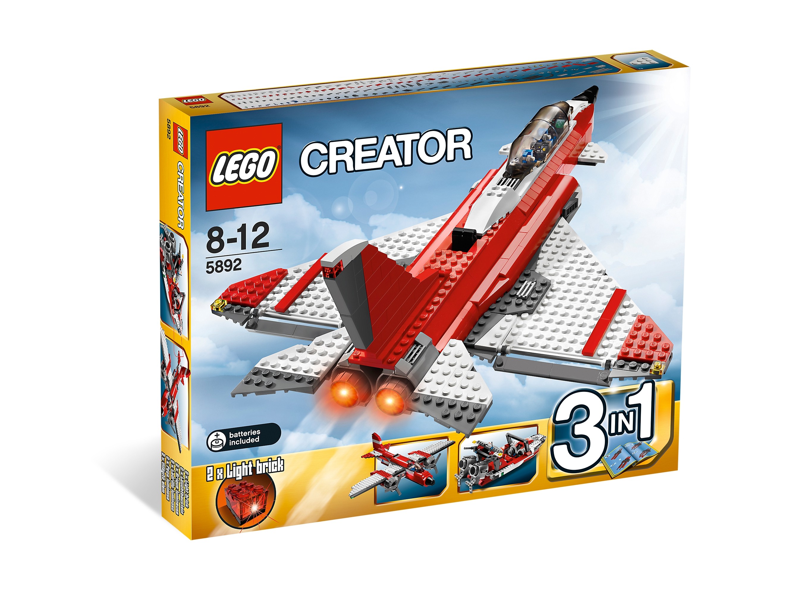 Zestaw klocków LEGO 5892 Creator Grom dźwiękowy został przedstawiony w 2010 roku i zbudowany jest z 539 klocków LEGO®. Klocki przeznaczone są dla dzieci i młodzieży powyżej 8 roku życia. Kody UPC zestawu klocków LEGO® Grom dźwiękowy to: 673419154550, 673419128629.