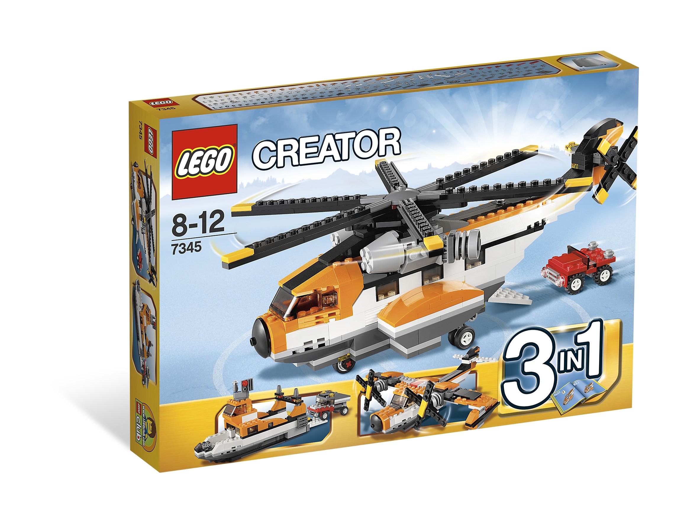 Zestaw klocków LEGO 7345 Creator Helikopter transportowy został zaprezentowany w 2012 roku i składa się z 383 klocków LEGO®. Zestaw przeznaczony jest dla dzieci i młodzieży od 8 roku życia. Kod UPC zestawu klocków LEGO® Helikopter transportowy to: 673419167222.